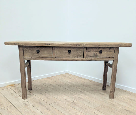 Rustic Reclaimed Elm Wood 3 drawer Console Table - Delivery Available 0286