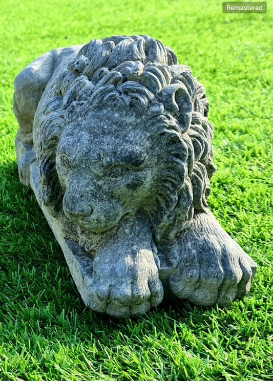 Pair Of Canova Lion English Stone Garden Ornaments - Free UK Delivery