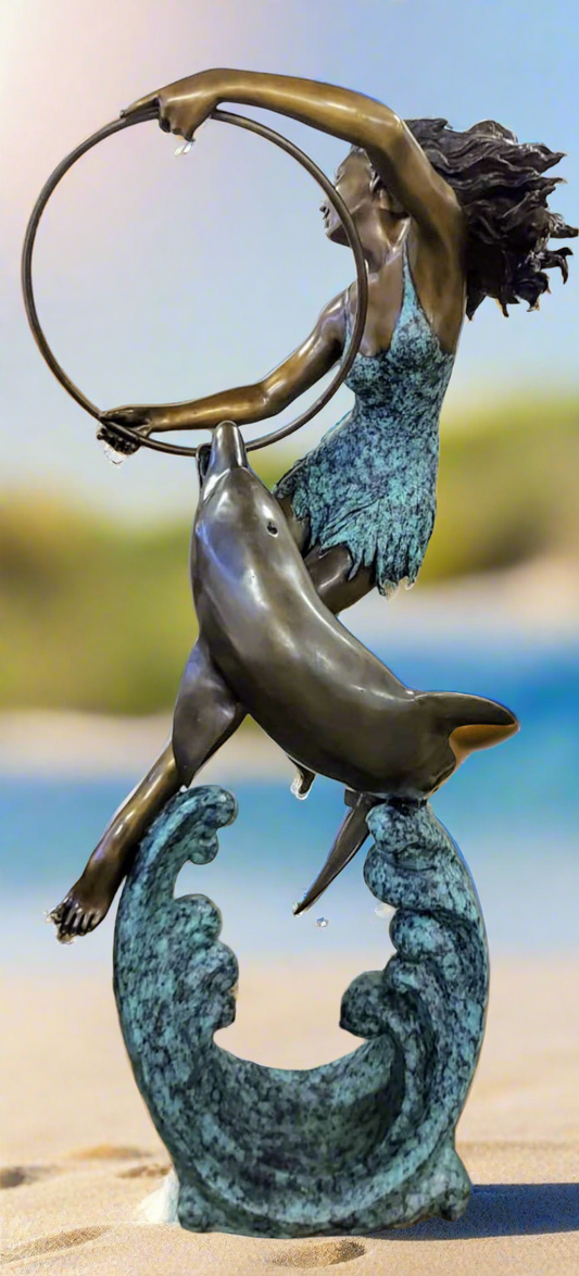 Discover the mesmerizing beauty of this Bronze Dolphin trainer water fountain, perfect for those who...