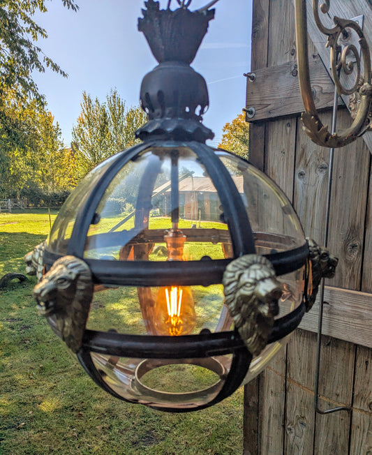 Bronze Verdigris & Brass Lions Glass Globe Lantern - Delivery Available In UK