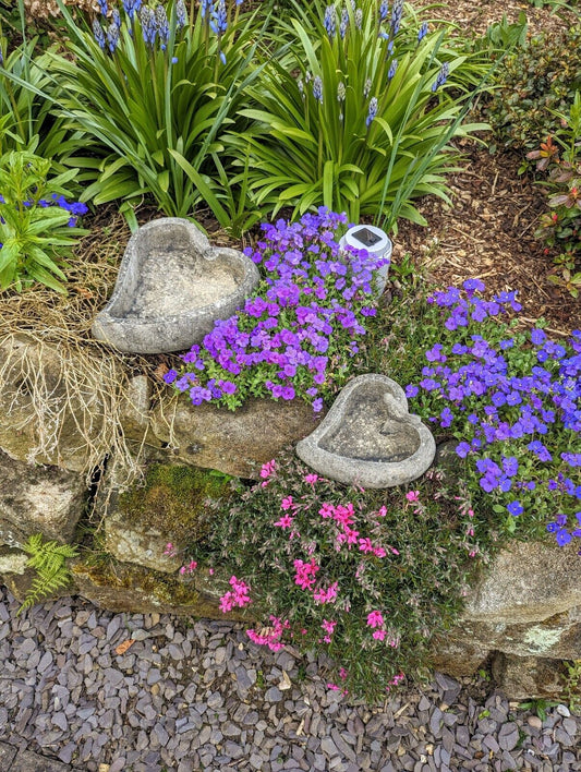 English Country Stone bird on heart bath will make a stunning addition to your garden....
