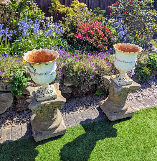 Beautiful Pair Victorian White Lotus Urns Cast Iron Circa 1840 (Andrew Handyside of Derby design) - Delivery Available