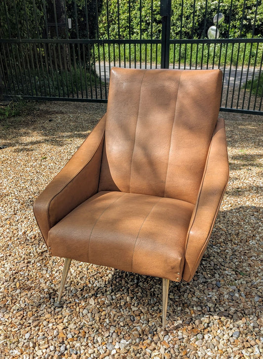 Quality Vintage 1960 Italian Armchair Brass Taper Supports Delivery Available
