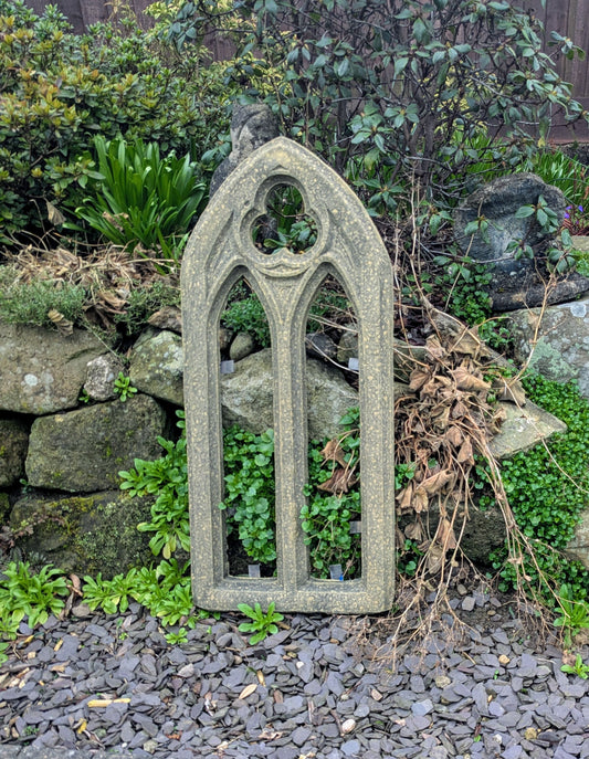 Church arch window garden ornament English stone - Delivery available 0216.