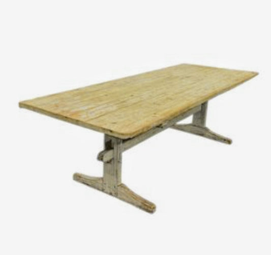 Vintage Large Pine refectory table 6 plank top shaped legs - Delivery available