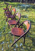 These six Bauhaus Bentwood chairs, produced by Thonet in the 1930s in the United Kingdom, boast a distinctive crocodile effect on the seat and backrest. They are also foldable and remain in excellent working condition.
