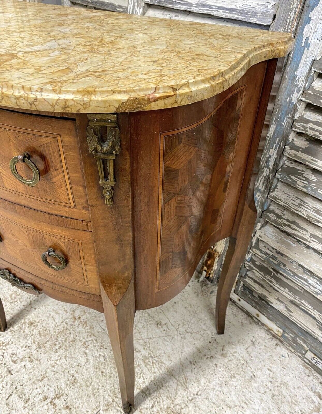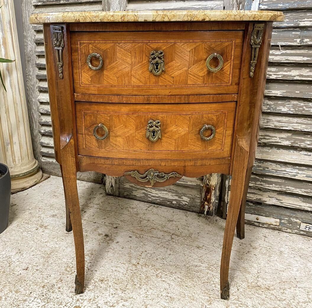 Add a touch of elegance to your bedroom with these beautiful French Louis XV Tulipwood Marquetry Chest of drawers.