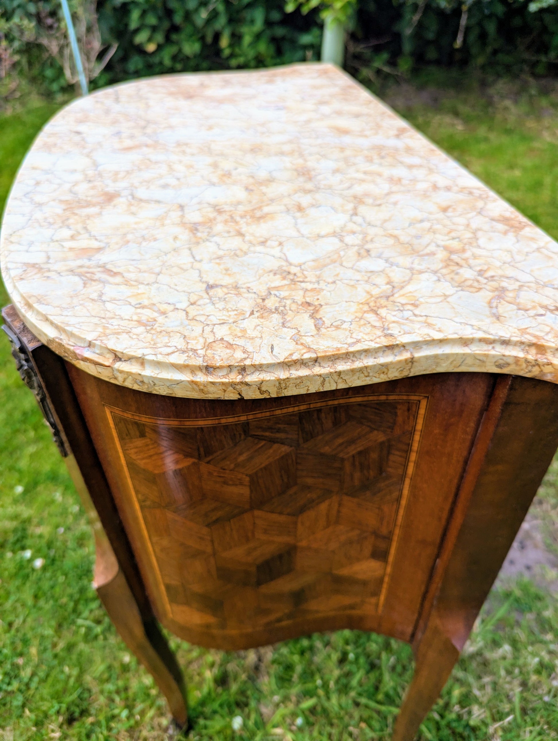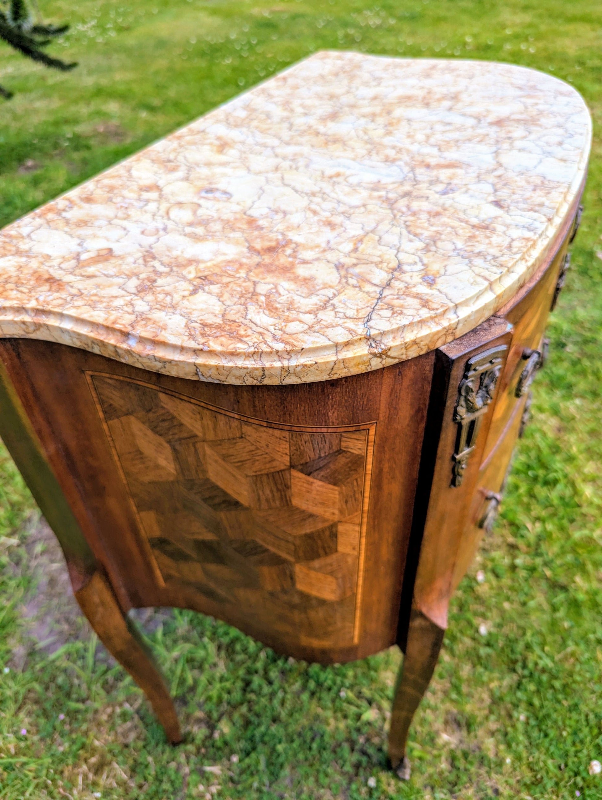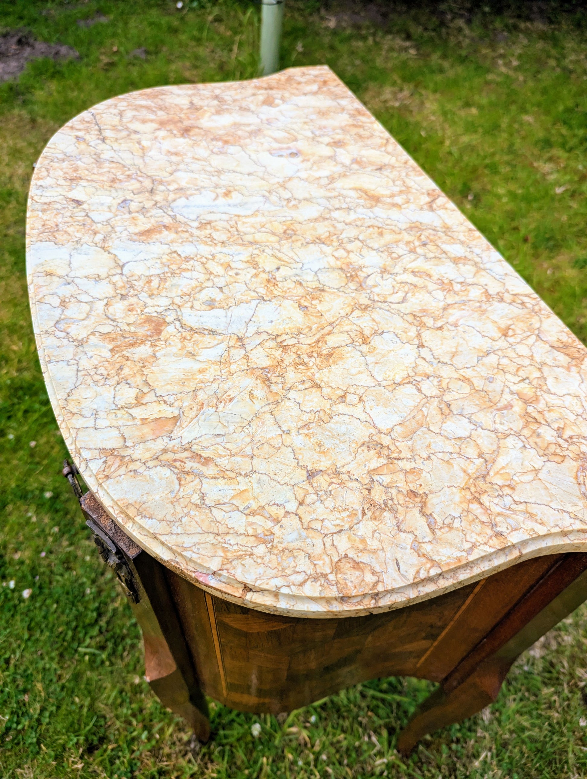 This Chest is perfect for any room and is ideal for indoor use only. The shaped Breche d Alep marble tabletop material adds to the beauty and durability of the chest. Assembly is not required, and no additional parts are needed. The Tulipwood brand adds to the authenticity and style of the chest , making this a great addition to any antique furniture collection.