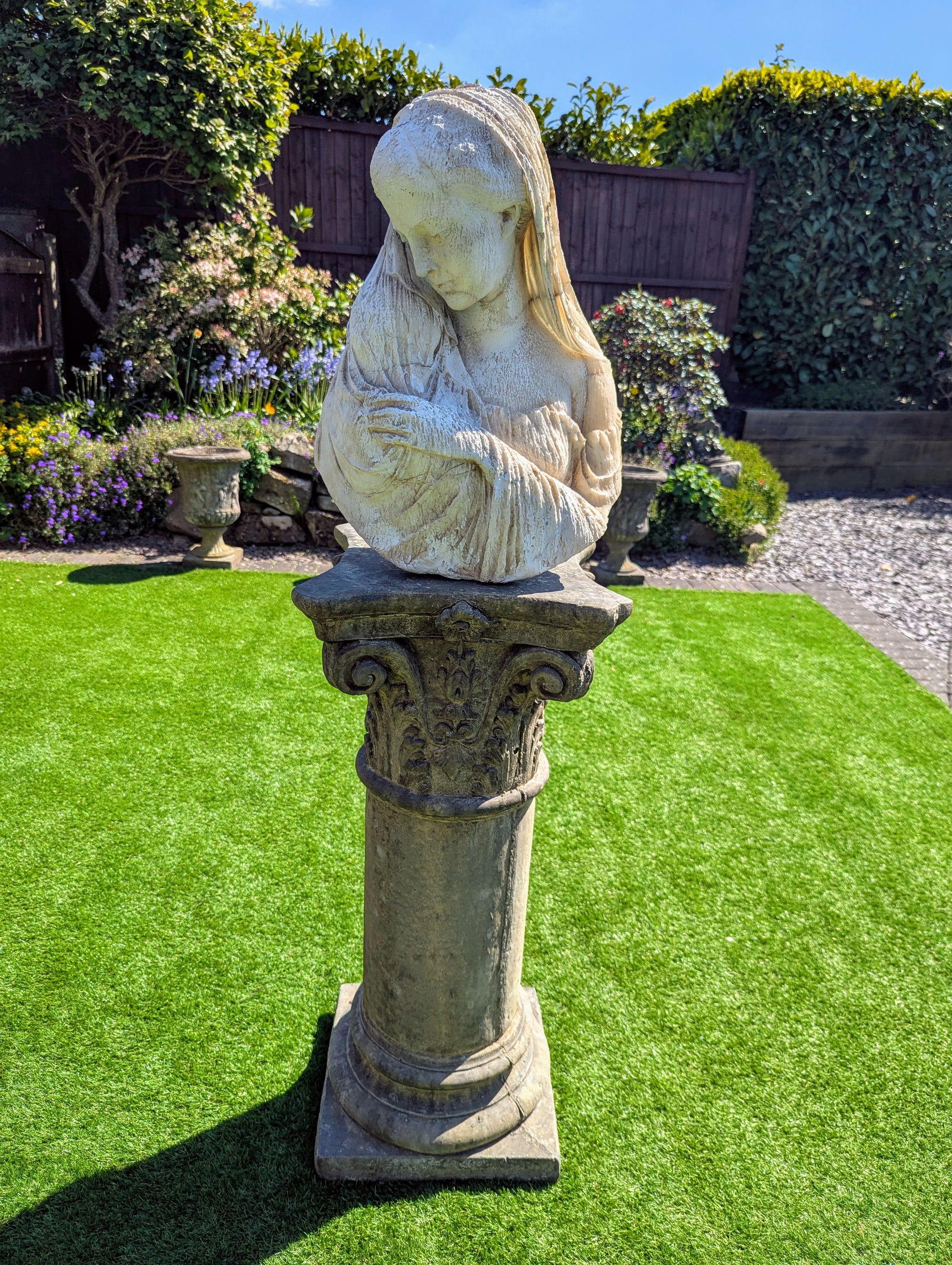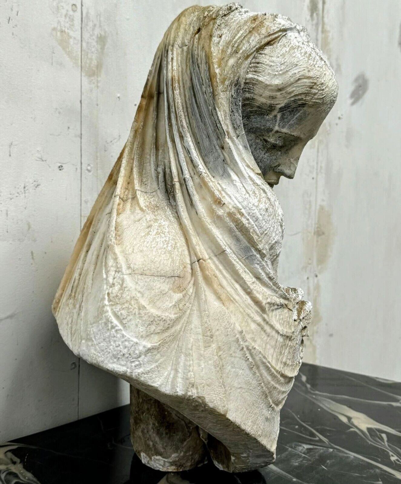 Beautiful weathered Carved Marble Madonna & Child Bust - Free UK Delivery
