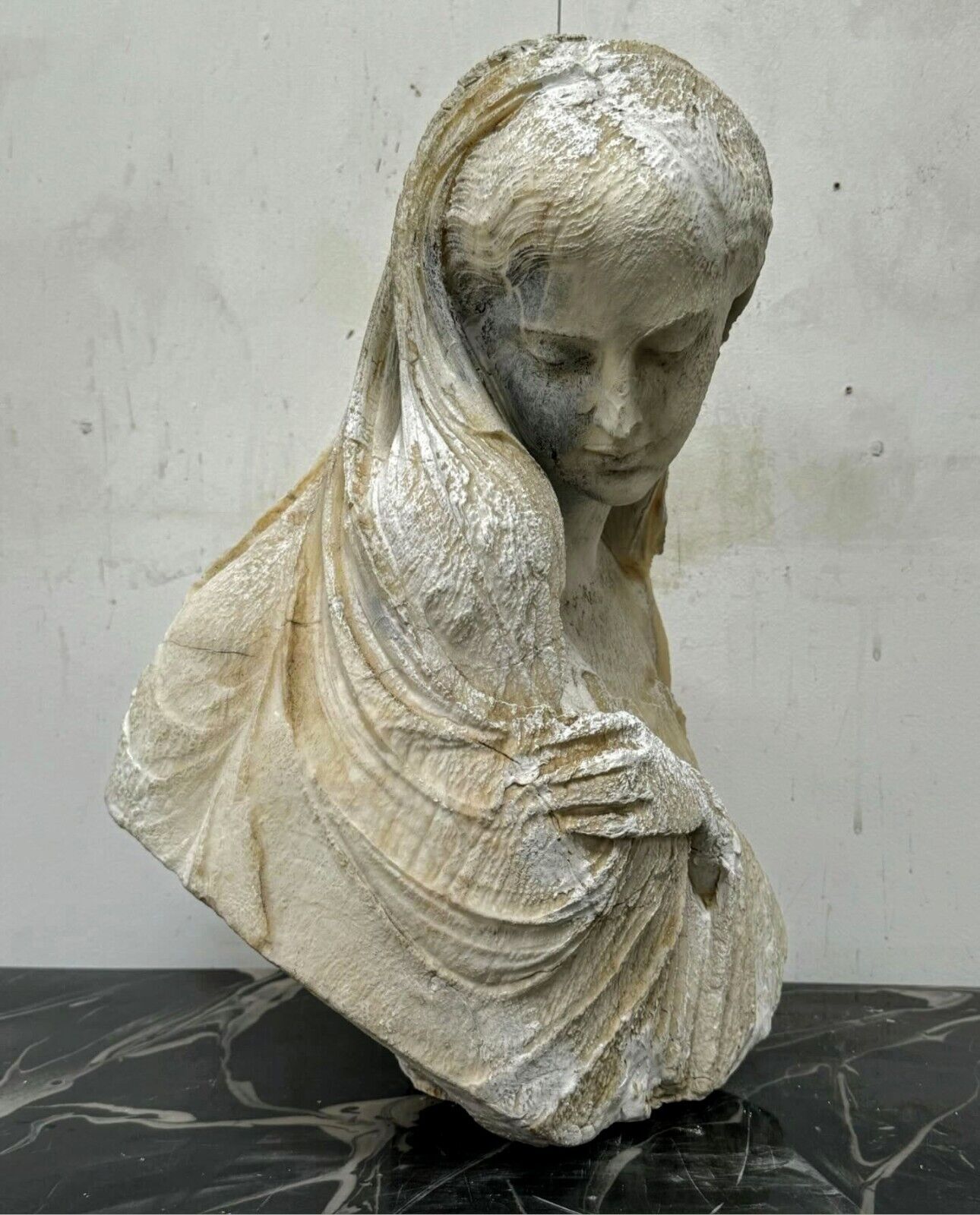 Crafted in the pre-1890, this bust features intricate weathered carvings that give it a unique and timeless appeal.