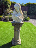 The Madonna and Child theme adds a touch of spirituality to the piece, making it a perfect addition to any garden or religious space.