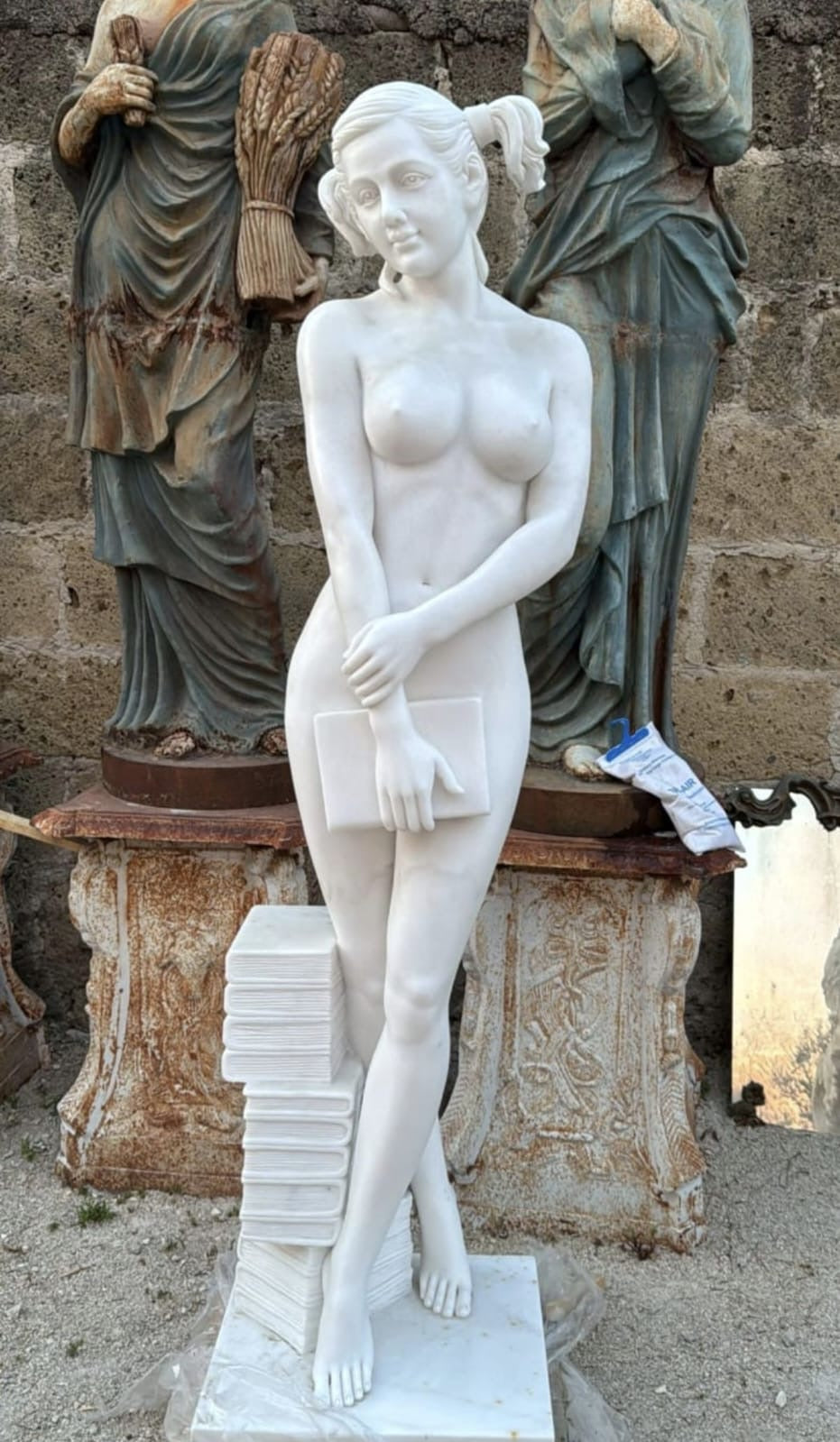 Beautiful white marble library girl statue - delivery available
