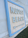 Add a unique touch to your outdoor space with this bespoke Nudest beach sign, styled as a half barn door. The item is an original piece crafted in the United Kingdom, offering a distinctive and authentic charm to your home or garden. This piece cannot be personalised, ensuring its universal appeal for admirers of retro advertising aesthetics. Ideal for collectors and enthusiasts of advertising signs, this item promises to be a conversation starter. Regardless of its previous use, the sign has been repurposed with an artistic flair, maintaining its vintage allure. Delivery is available, ensuring that this one-of-a-kind piece can find its way to your collection with ease. Width: 93 cm Depth: 6 mm Height: 91 cm |