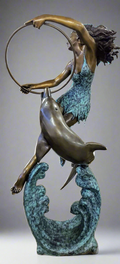 Discover the mesmerizing beauty of this Bronze Dolphin trainer water fountain, perfect for those who value antique precious metal decor.