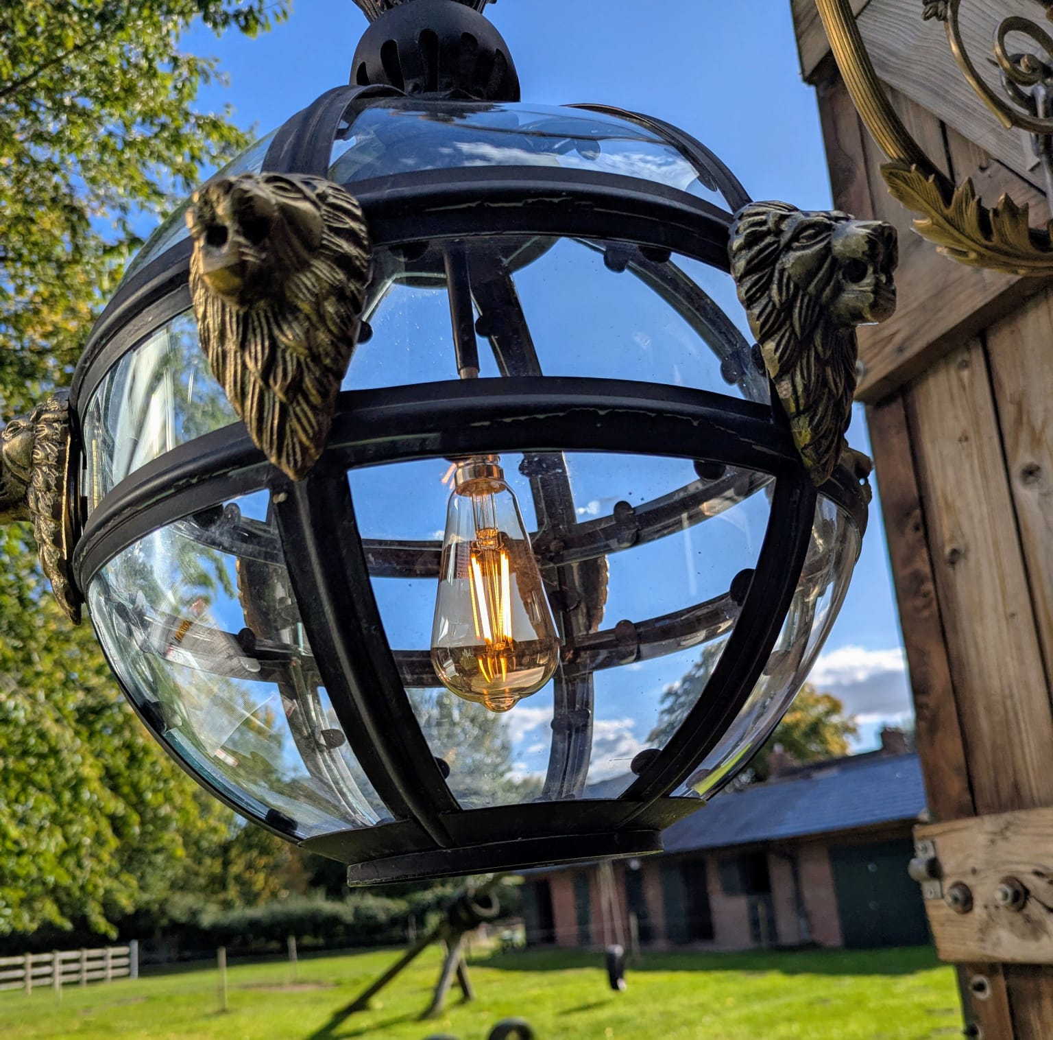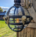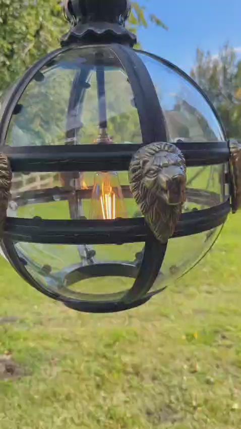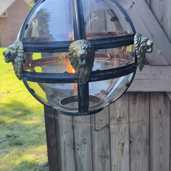 Bronze Verdigris & Brass Lions Glass Globe Lantern - Delivery Available In UK
