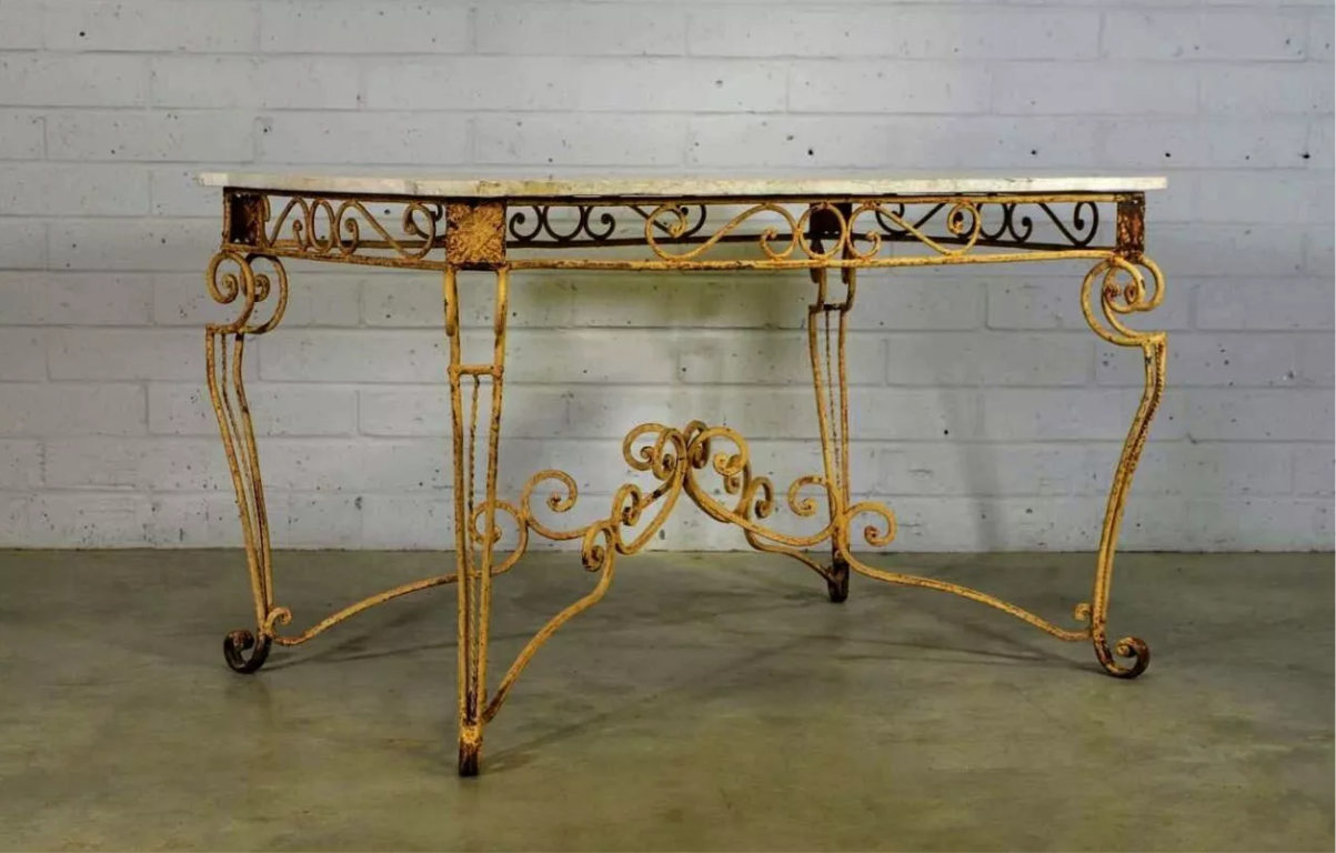 Charming Art Deco Iron French 1930s Marble Top Table - Delivery Included