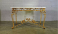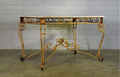 Add a touch of vintage charm to your living space with this classy Art Deco wrought iron each with scrolled frame centre table. With a beautiful marble top and a unique design, this table is perfect for indoor and outdoor use. The table is part assembled and feature a stunning wrought iron finish that adds a touch of elegance to any room. Crafted in France during the 1930s, original Art Deco centre table is made from high-quality materials such as marble and iron. The table is 135 cm long, 90 cm wide, and 82 cm high, making it a perfect size for any living room. The brown rustic colour of the tables adds a touch of sophistication to any decor. Get your hands on this stunning centre table today and add a touch of vintage charm to your home. There may be some marks and imperfections under our wax & polish this console is consistent with age and authentic character. This is absolutely what you should expect when buying genuine antiques / vintage items. Width: 135 cm Height: 82 cm Depth: 90 cm Delivery included to mainland England. Extra costs may be added for rural areas. |