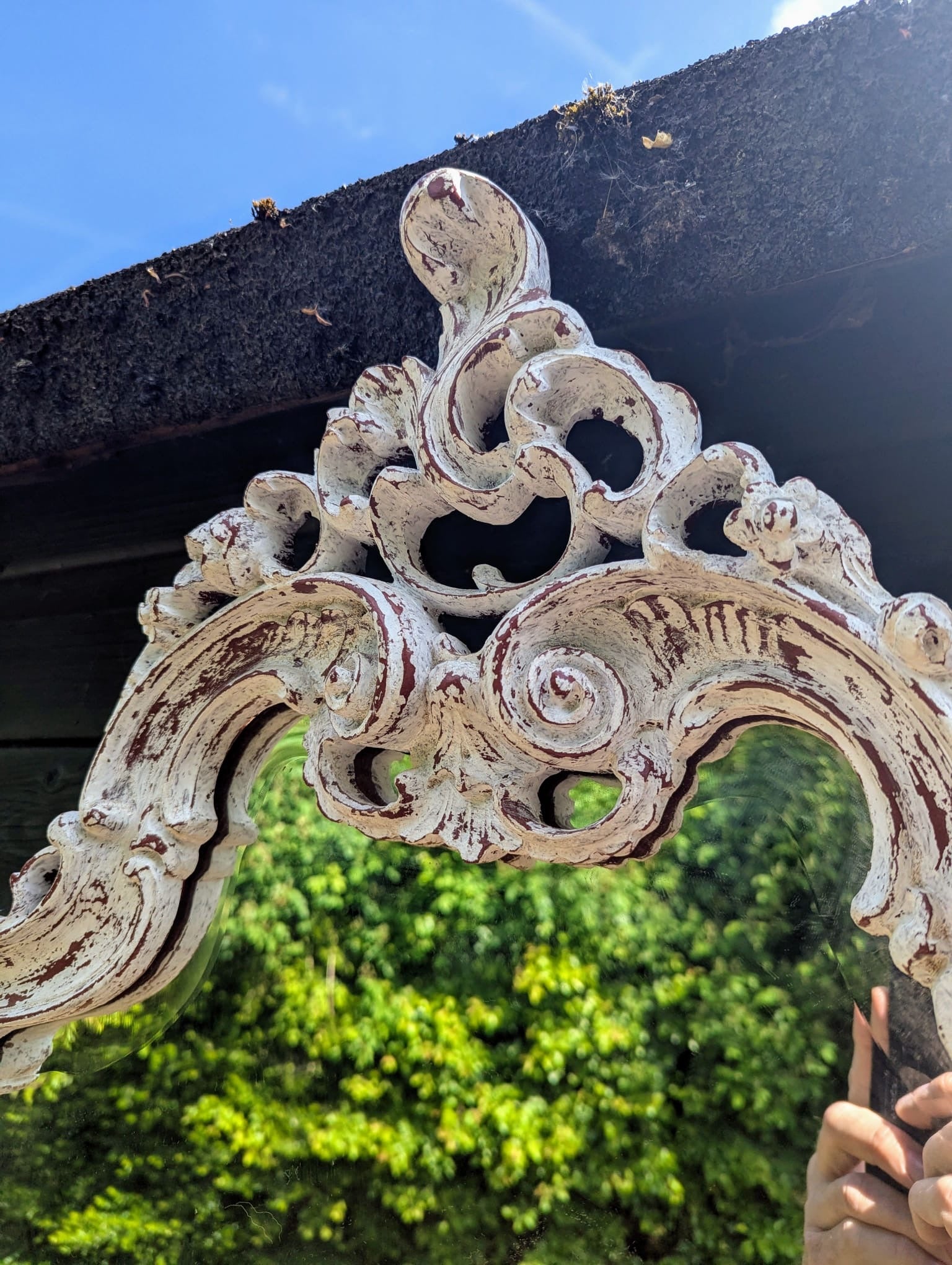 Add a touch of classic charm to your home with this exquisite Italian carved and painted rustic wall mirror. The mirror boasts a unique heart shape, measuring 92cm in length and 150cm in height, with a stunning white frame finish that is sure to complement any room's decor. Crafted from high-quality wood painted frame material, this original piece is a beautiful addition to any room, whether it's the living room, bedroom, or hallway. With its distressed features and mirrored frame finish, this wall mirror exudes a sense of elegance and sophistication, making it the perfect choice for those who appreciate fine craftsmanship. The mirror has been replaced & is a great way to add depth and character to any space, and its versatile design makes it suitable for any style, whether it's English or contemporary. Don't miss out on the opportunity to own this one-of-a-kind piece, and let it become the focal point of your home. Width: 150 cm Height: 92 cm Depth: 6 cm |