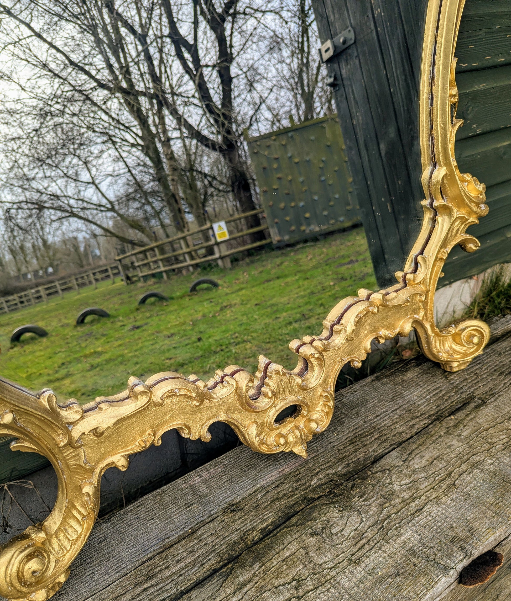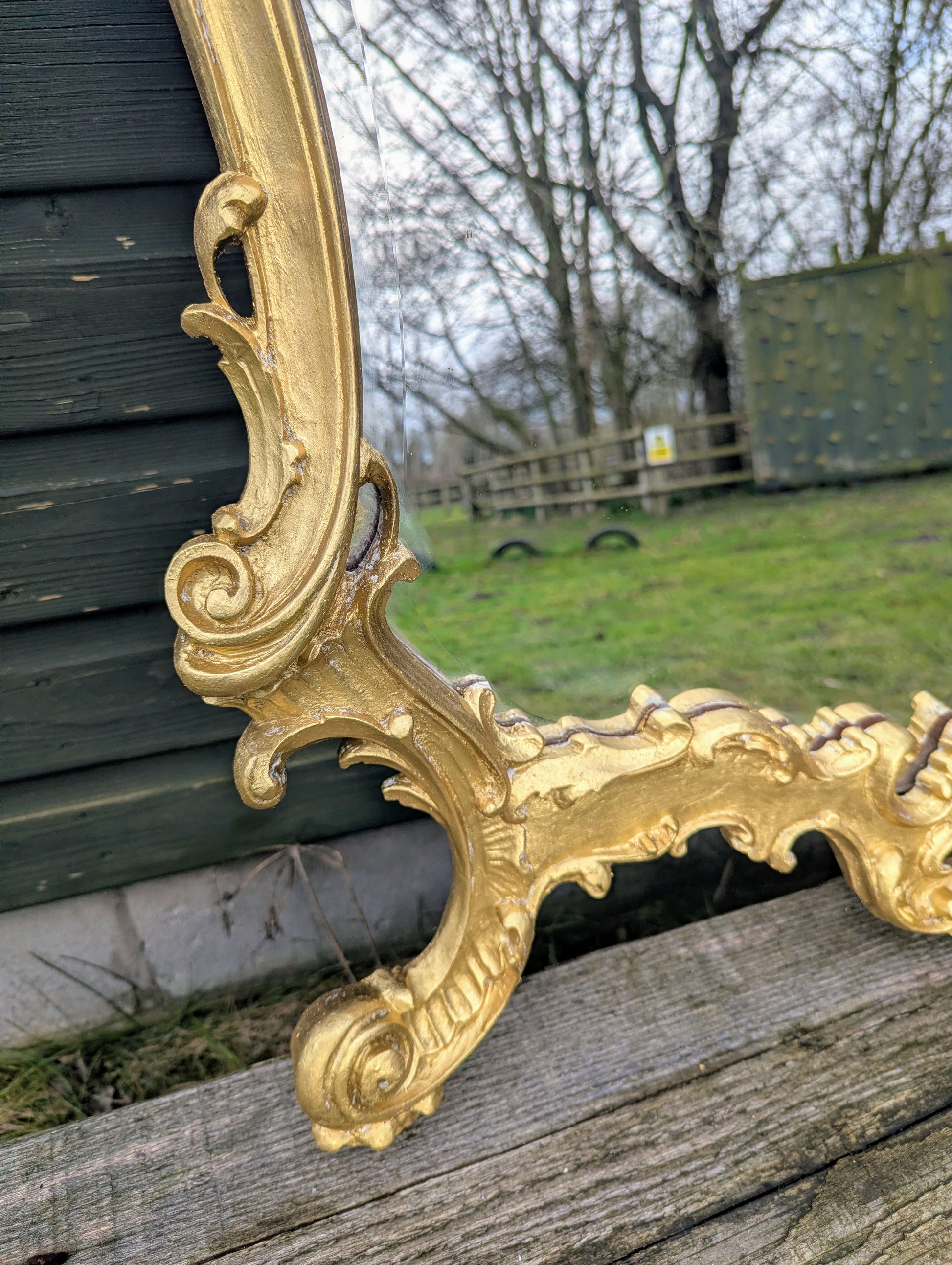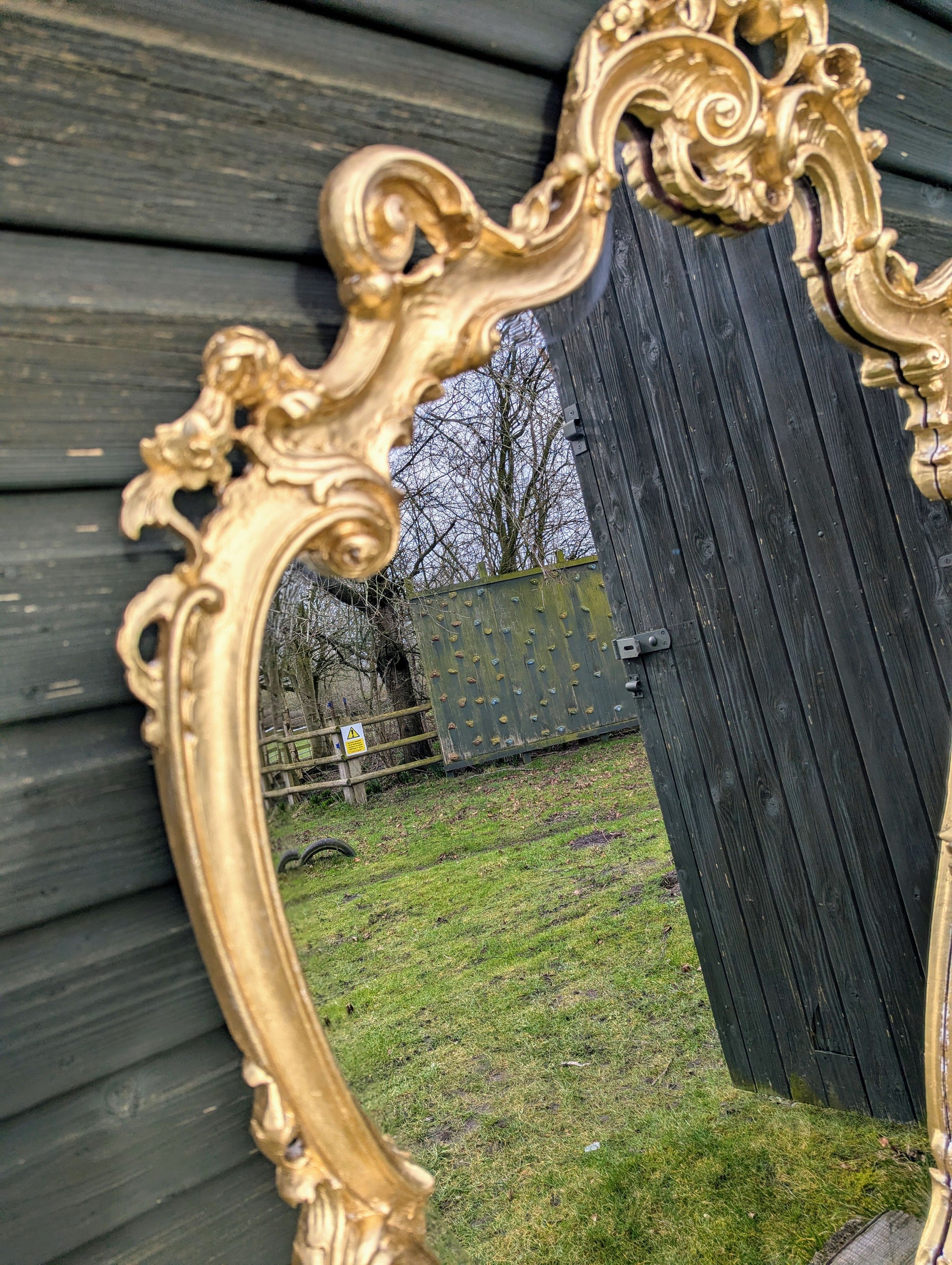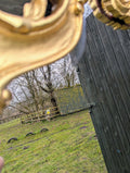 Add a touch of classic charm to your home with this exquisite Italian carved and gold gild large wall mirror. The mirror boasts a unique heart shape, measuring 92cm in length and 150cm in height, with a stunning gold frame finish that is sure to complement any room's decor. Crafted from high-quality wood painted frame material, this original piece is a beautiful addition to any room, whether it's the living room, bedroom, or hallway. With its distressed features and mirrored frame finish, this wall mirror exudes a sense of elegance and sophistication, making it the perfect choice for those who appreciate fine craftsmanship. The mirror has been replaced & is a great way to add depth and character to any space, and its versatile design makes it suitable for any style, whether it's English or contemporary. Don't miss out on the opportunity to own this one-of-a-kind piece, and let it become the focal point of your home. Width: 150 cm Height: 92 cm Depth: 6 cm If you are in a rural or coastal area over 50 miles from a motorway , Ireland or North of Glasgow or Edinburgh Please send your postcode for a quote? In addition if you are unsure please send your postcode to check if your area is eligible for our free delivery service or a small additional cost ? For more information please see our shipping & delivery information below. Delivery is via our sister specialist Antiques courier company to ensure safe item transit. We can leave items in a safe place if you are not going to be around, item pictures taken at delivery. Statuary can be placed in your desired garden position. You are very welcome to collect in person or arrange your own courier. Please give your courier our Transport mobile to arrange a collection : 07879 240869 |