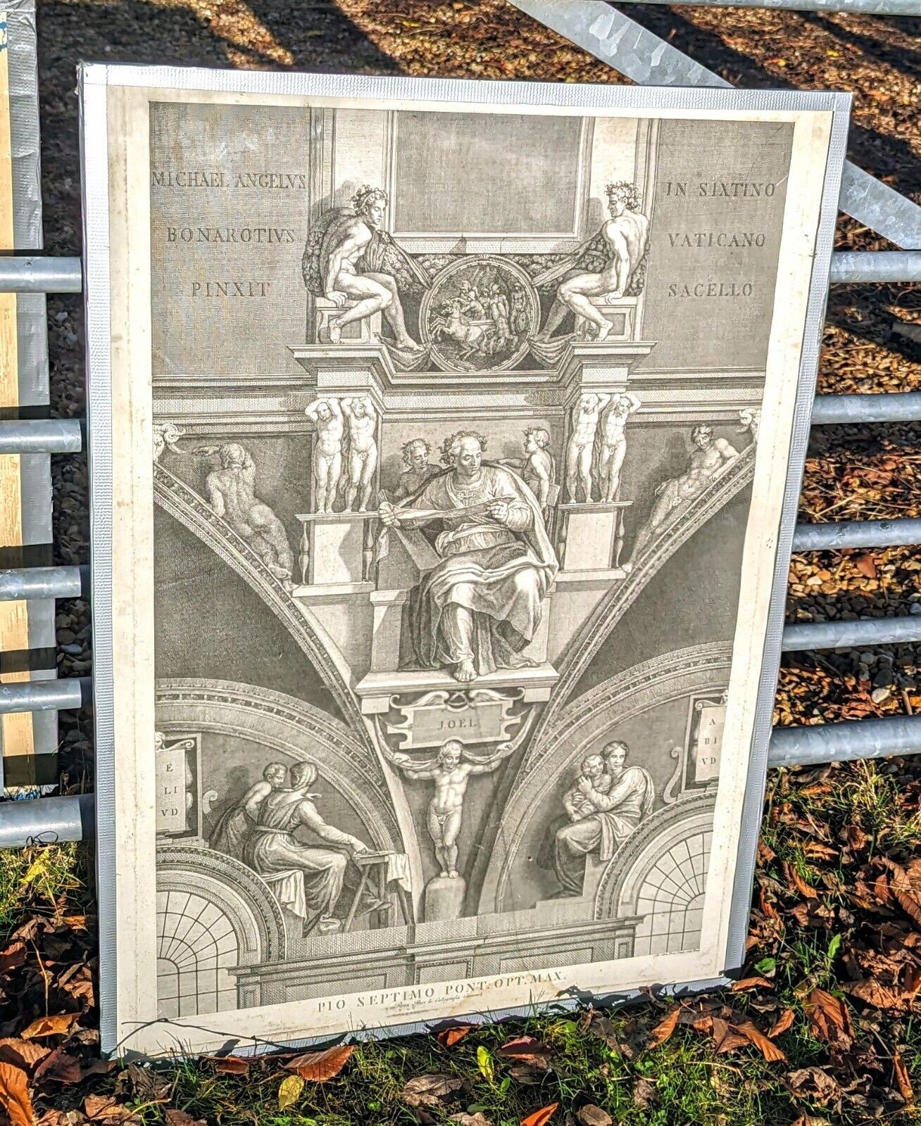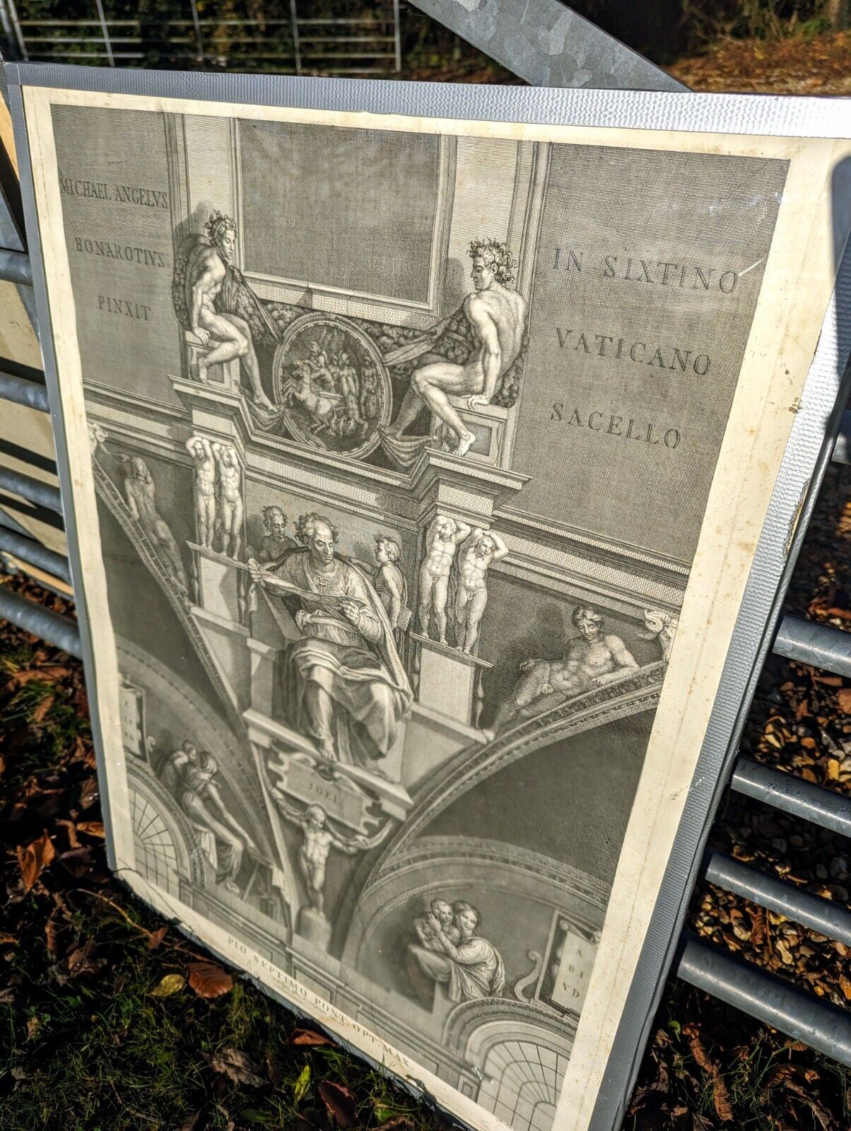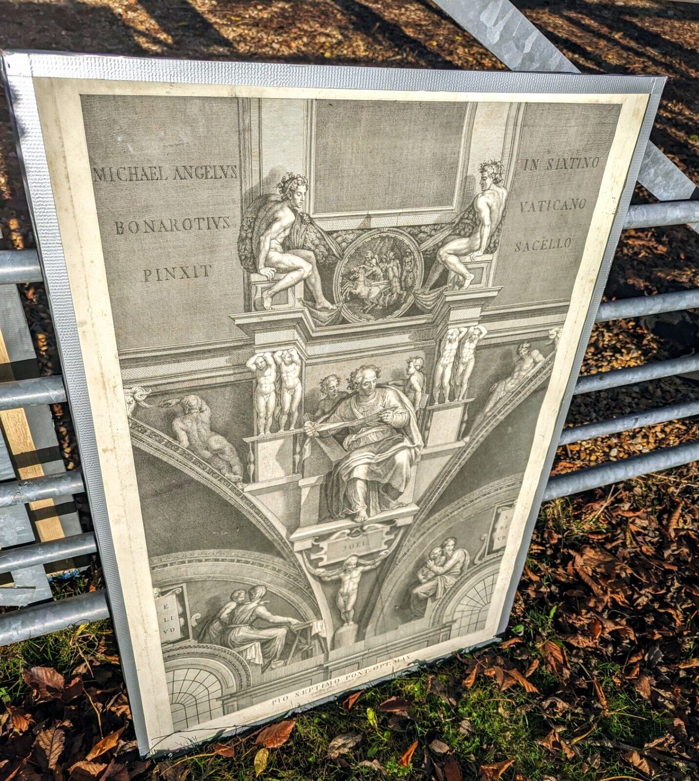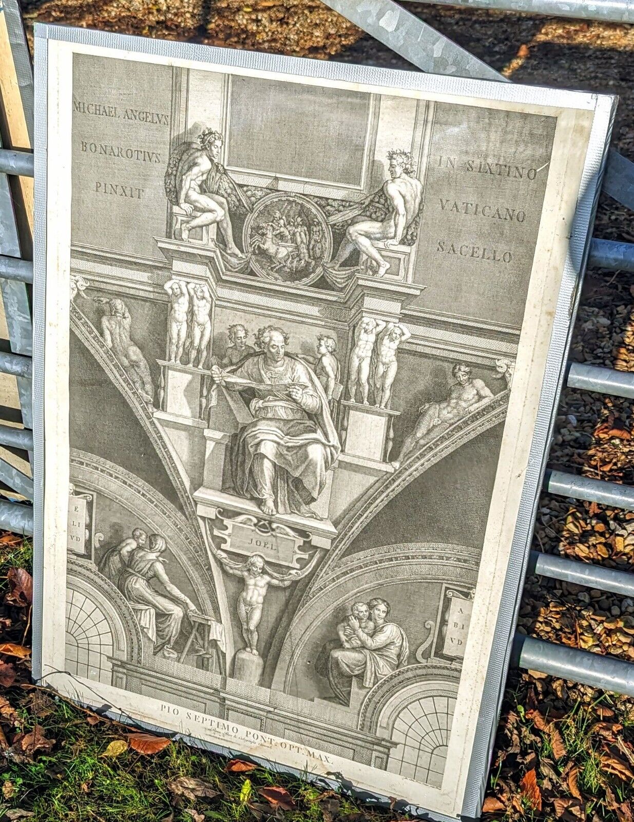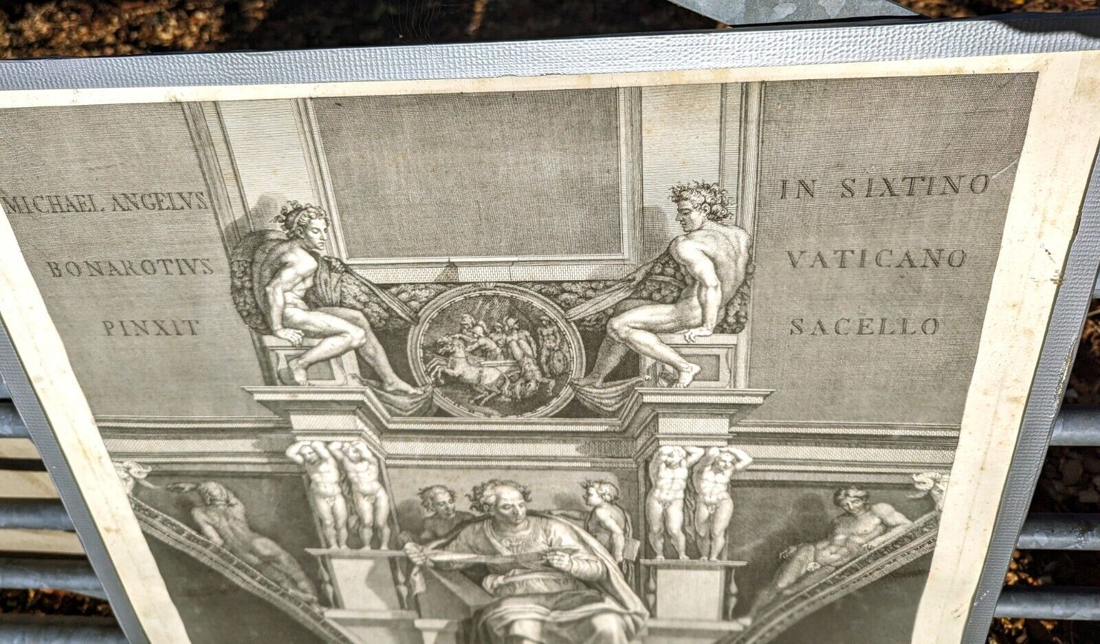LARGE 19TH CENTURY LITHOGRAPH OF MICHAELANGELOS WORK IN THE VATIGAN.