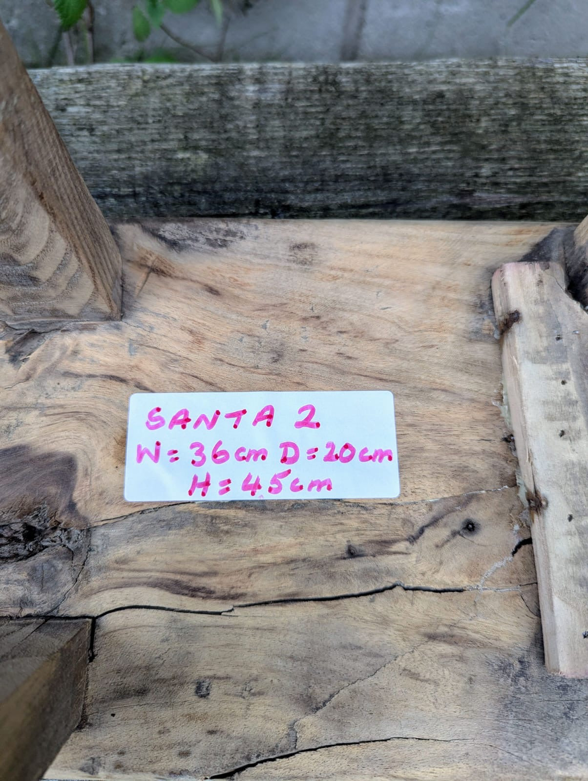 Santa 2 - This rustic reclaimed vintage elm table and stool set is a charming addition to any home. Crafted from solid elm wood, the pieces feature a unique hand production technique that gives them a vintage look. The rustic colour and Vaseline production style add to the authenticity of the design, making them a distinctive and durable choice for your dining or bar area. Delivery is available, making it convenient to bring these one-of-a-kind pieces to your space.