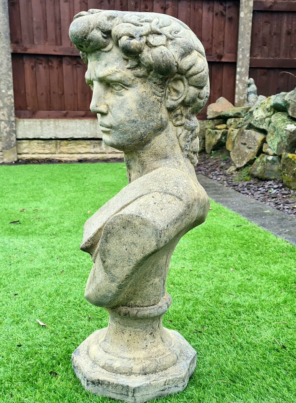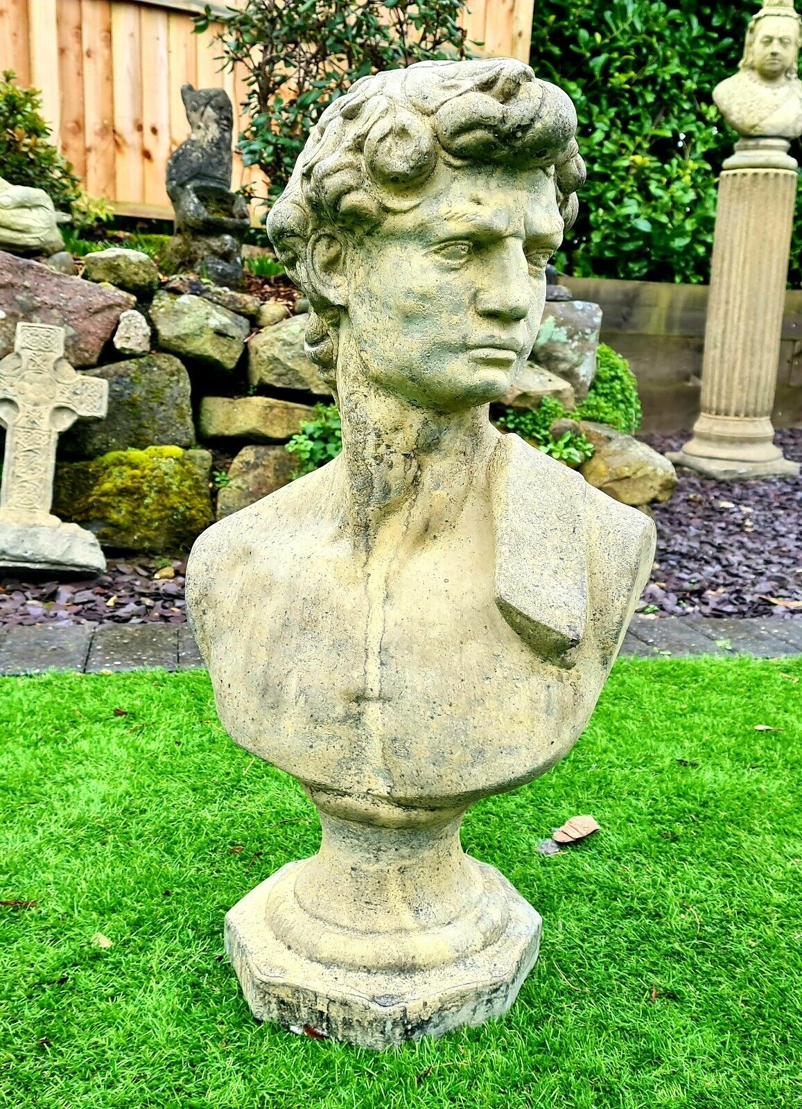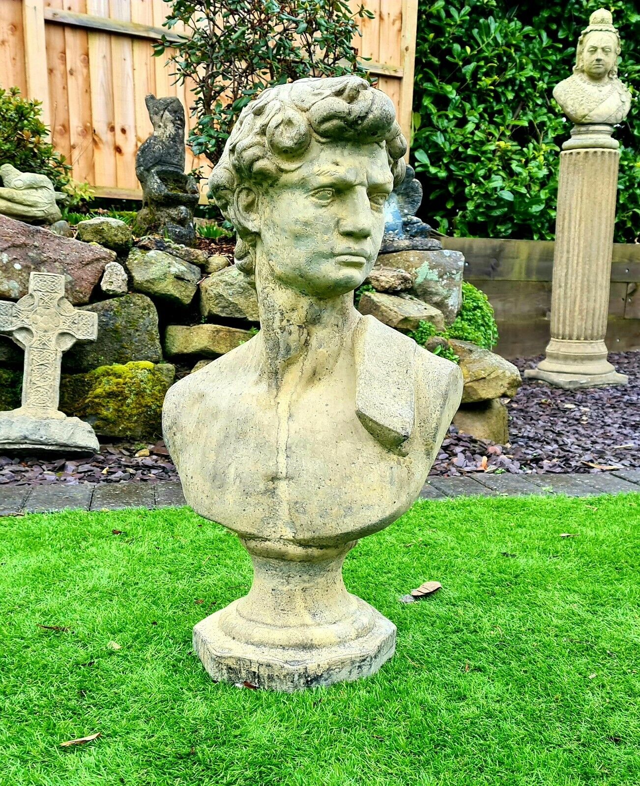 David by Michael Angelo bust English stone garden ornament - Free UK Delivery