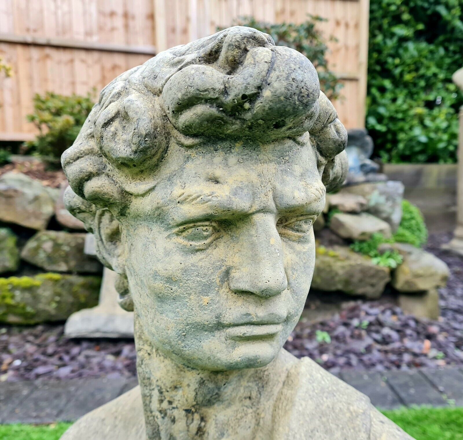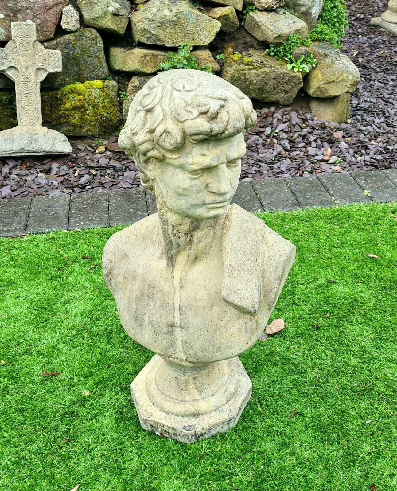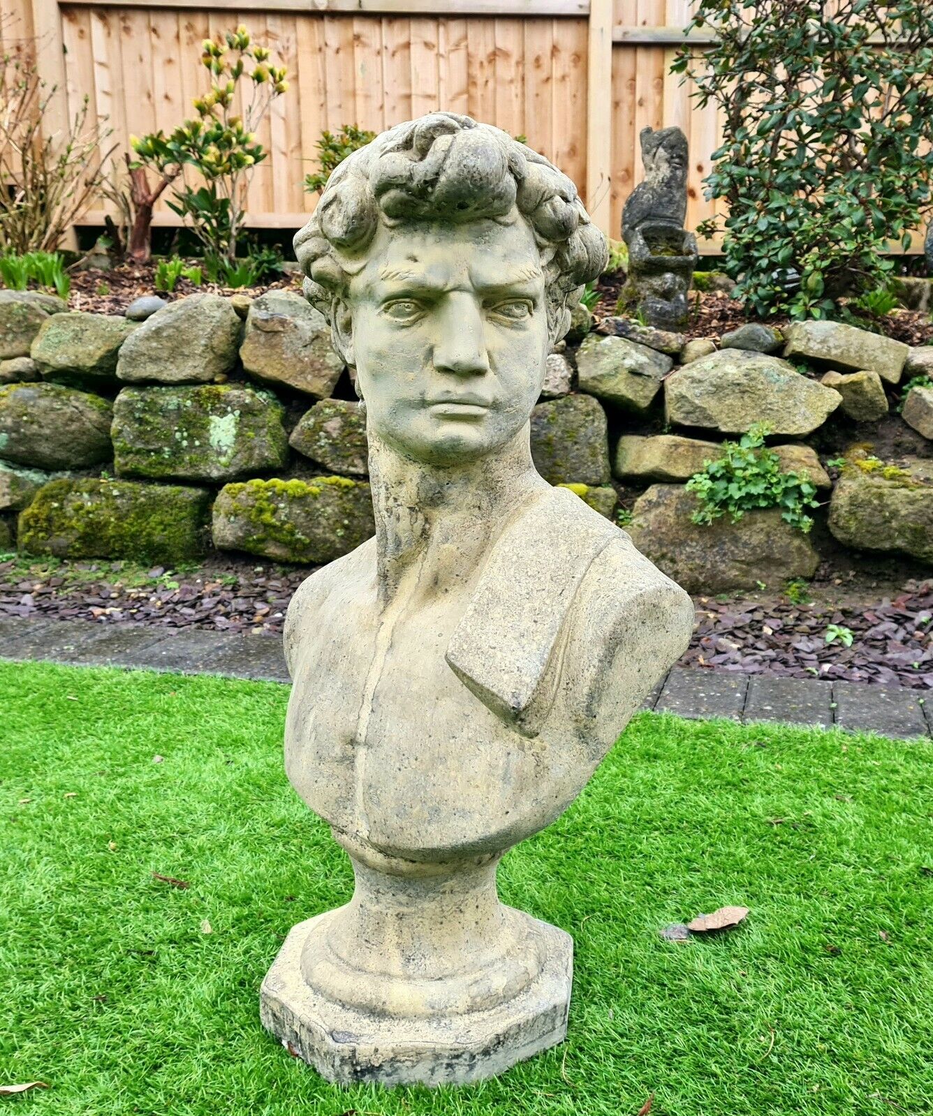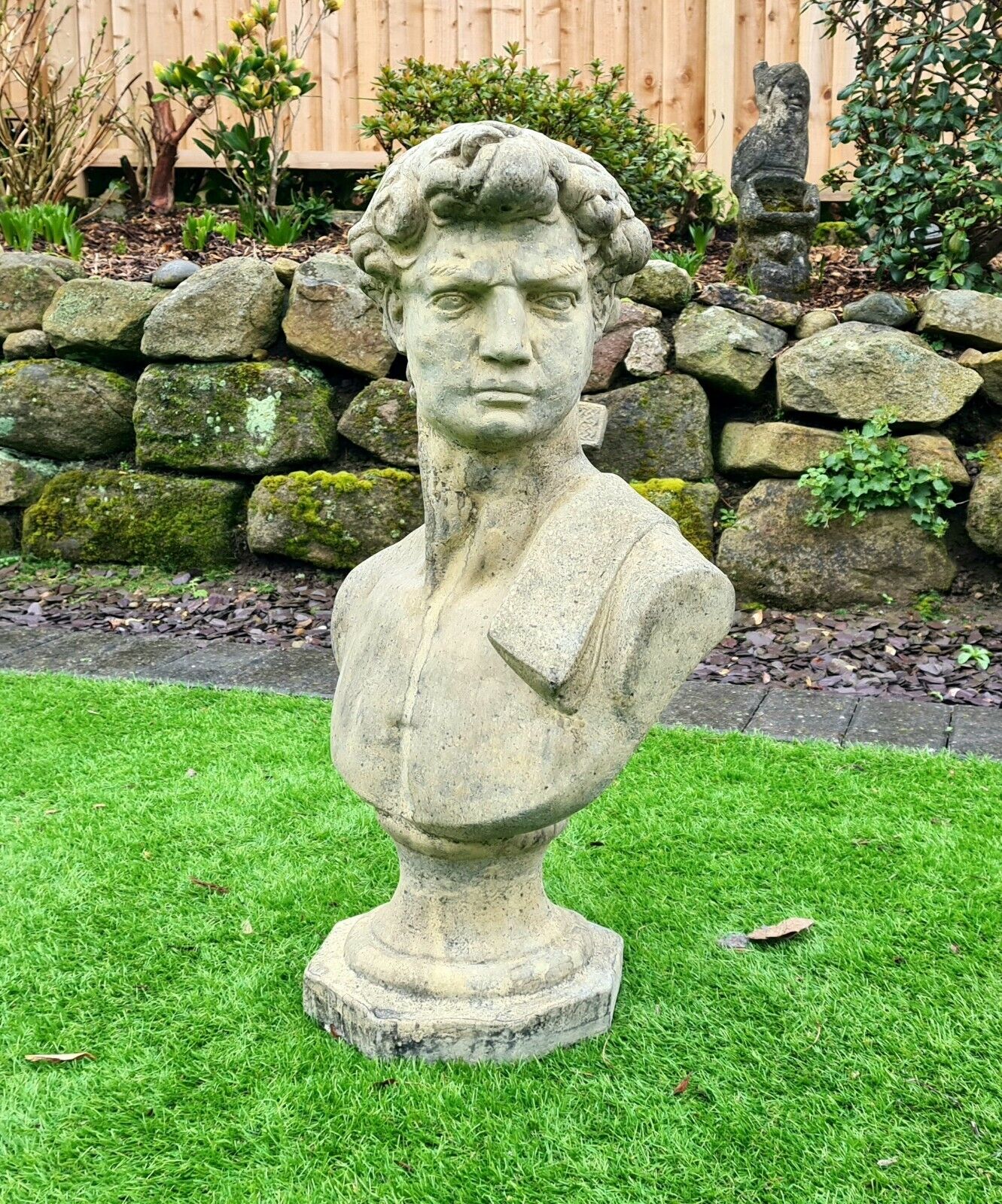 David by Michael Angelo bust English stone garden ornament - Free UK Delivery