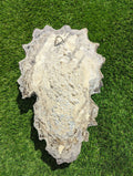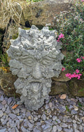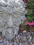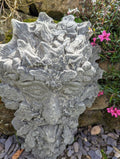 Devonshire Greenman garden face plaque boasts great detail, hand-crafted from locally-sourced English stone and featuring sparkling quartz. This antique-style piece is frost-proof and weather-resistant, built to last for years despite outdoor exposure.