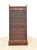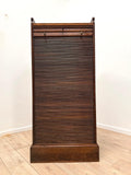 This early 20th-century Tambour cabinet is a stunning piece of antique furniture crafted from teak with a brushed brass handles.