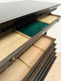This 19th-century Ebonised jewelry, specimen collectors chest features a spiral-turned brass handle finish with antique brass detailing.