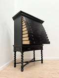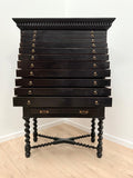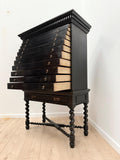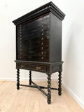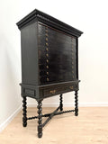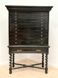 Ebonised 19c jewellery, specimen chest on spiral turned legs - Delivery Available