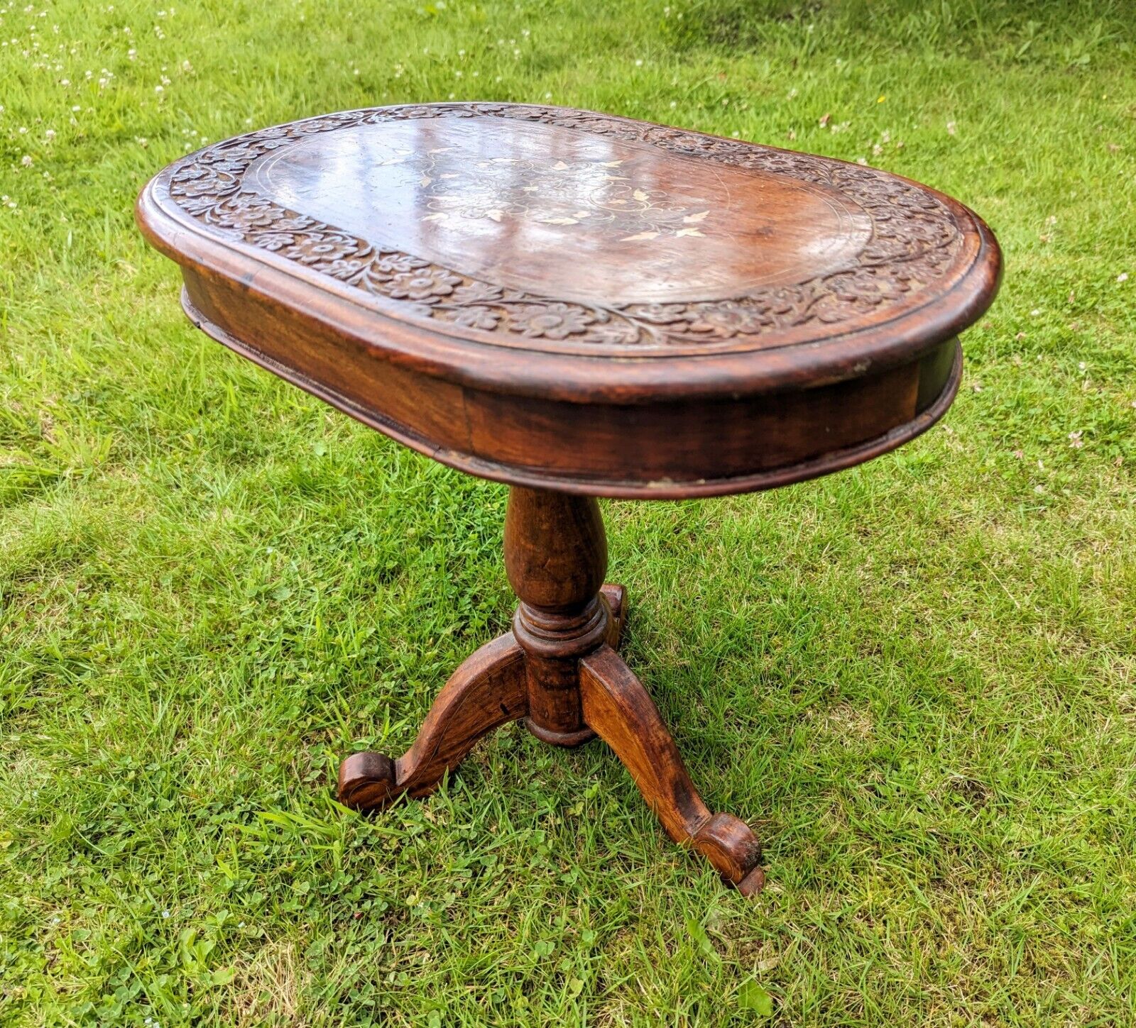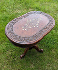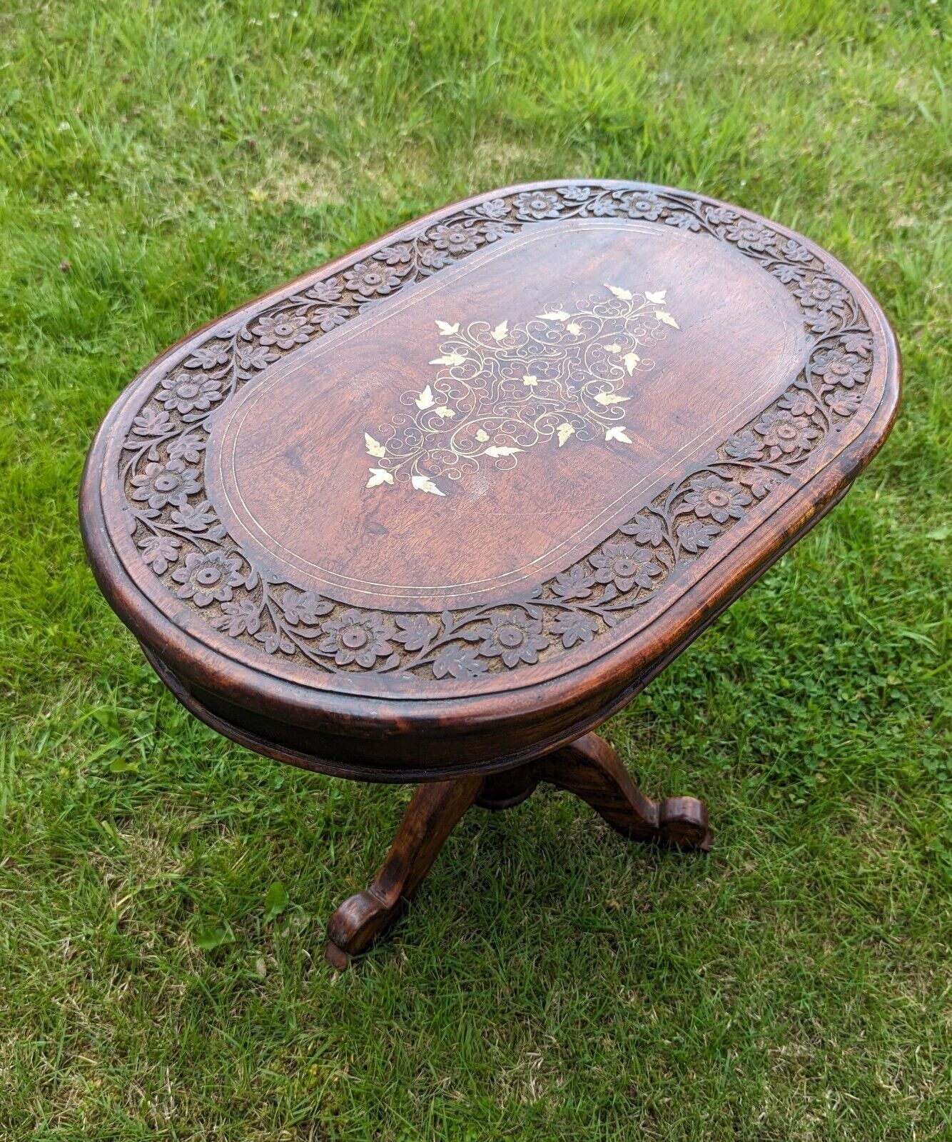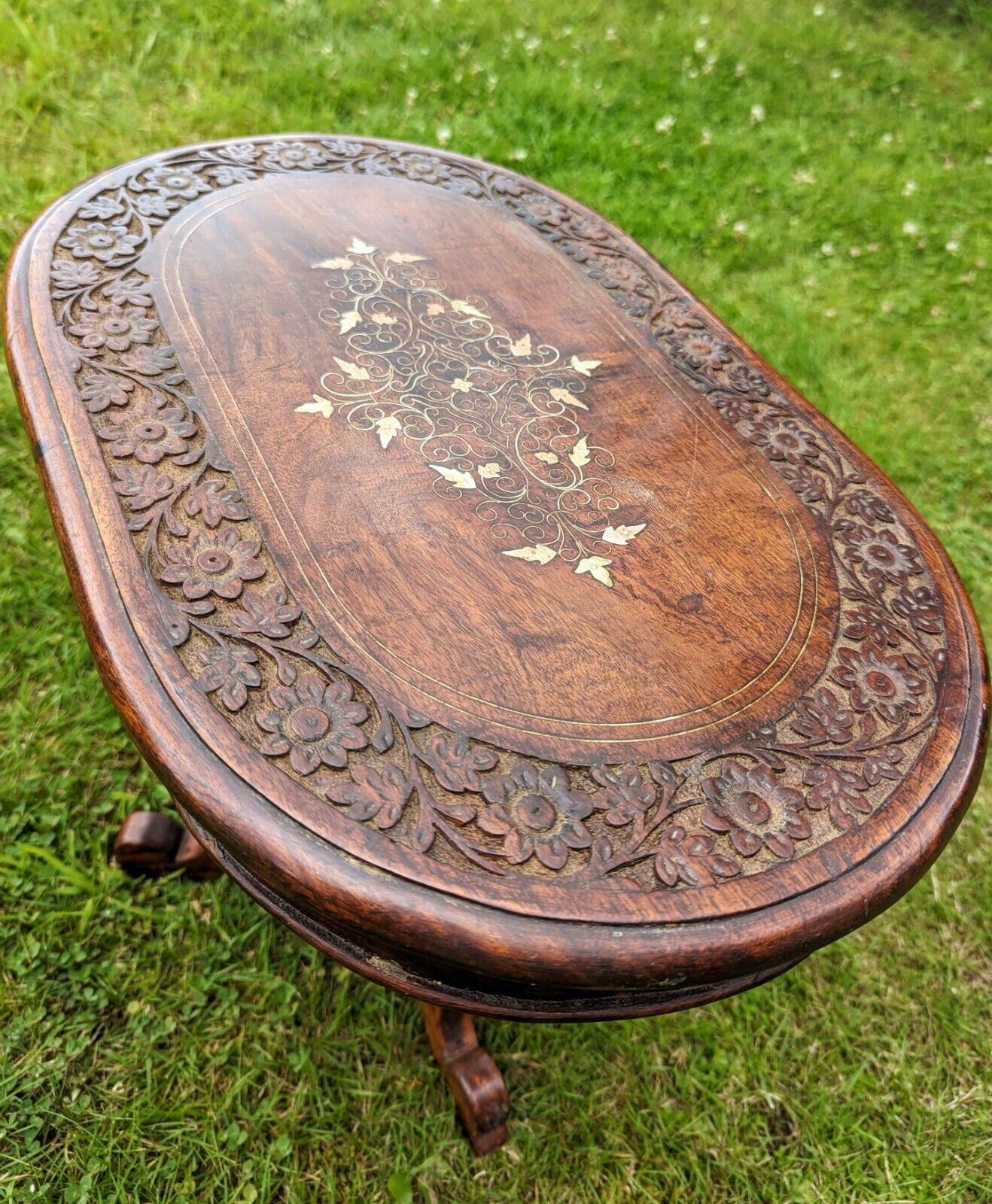 Antique indian hardwood brass inlaid oval table - Free UK Delivery