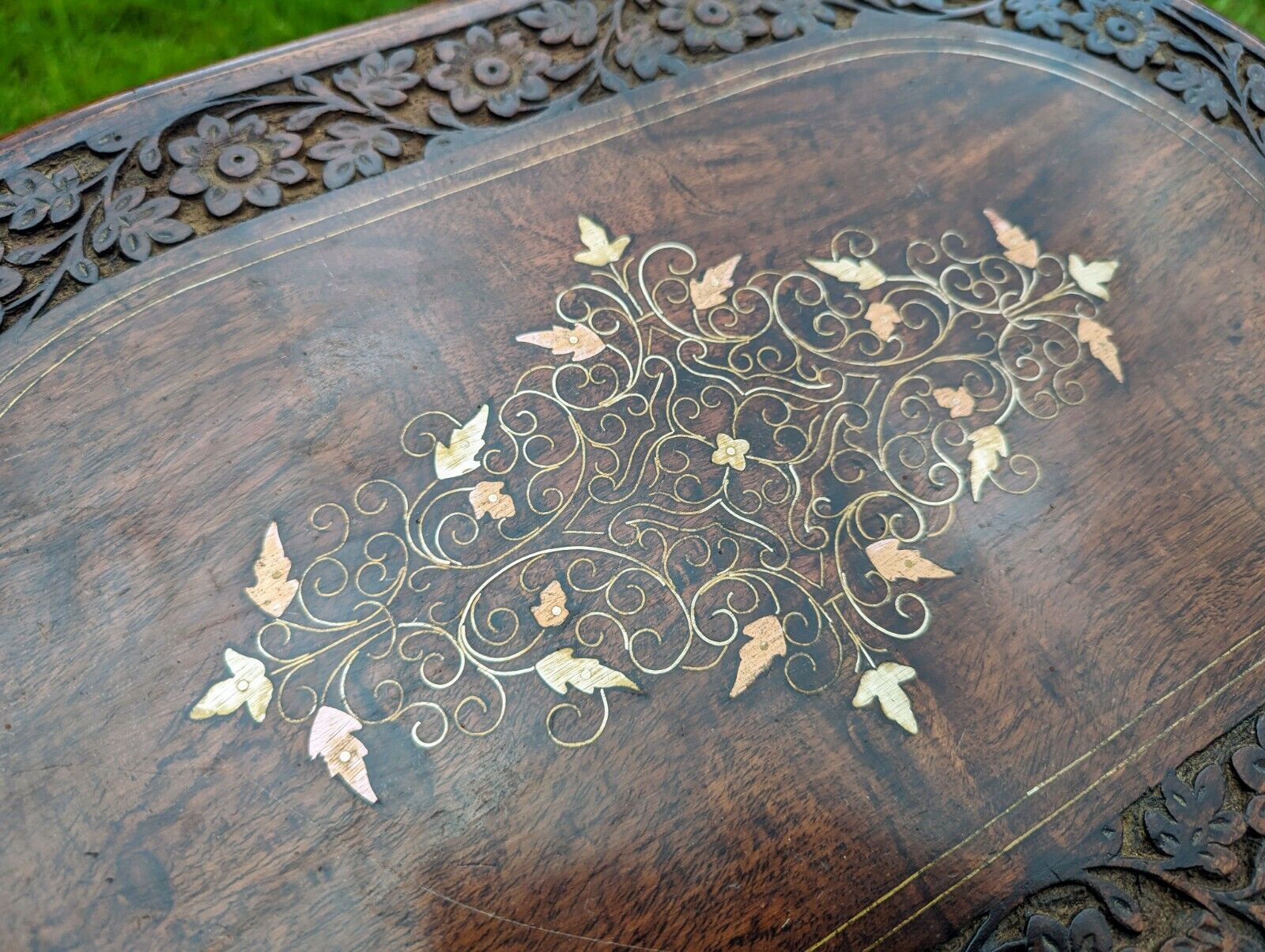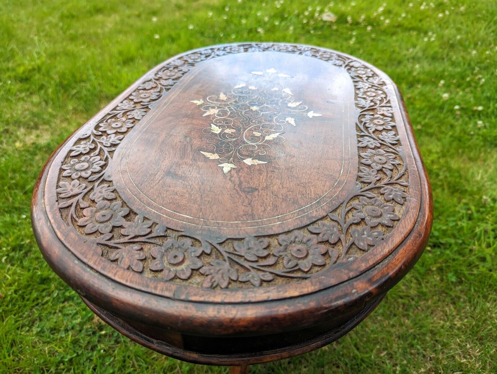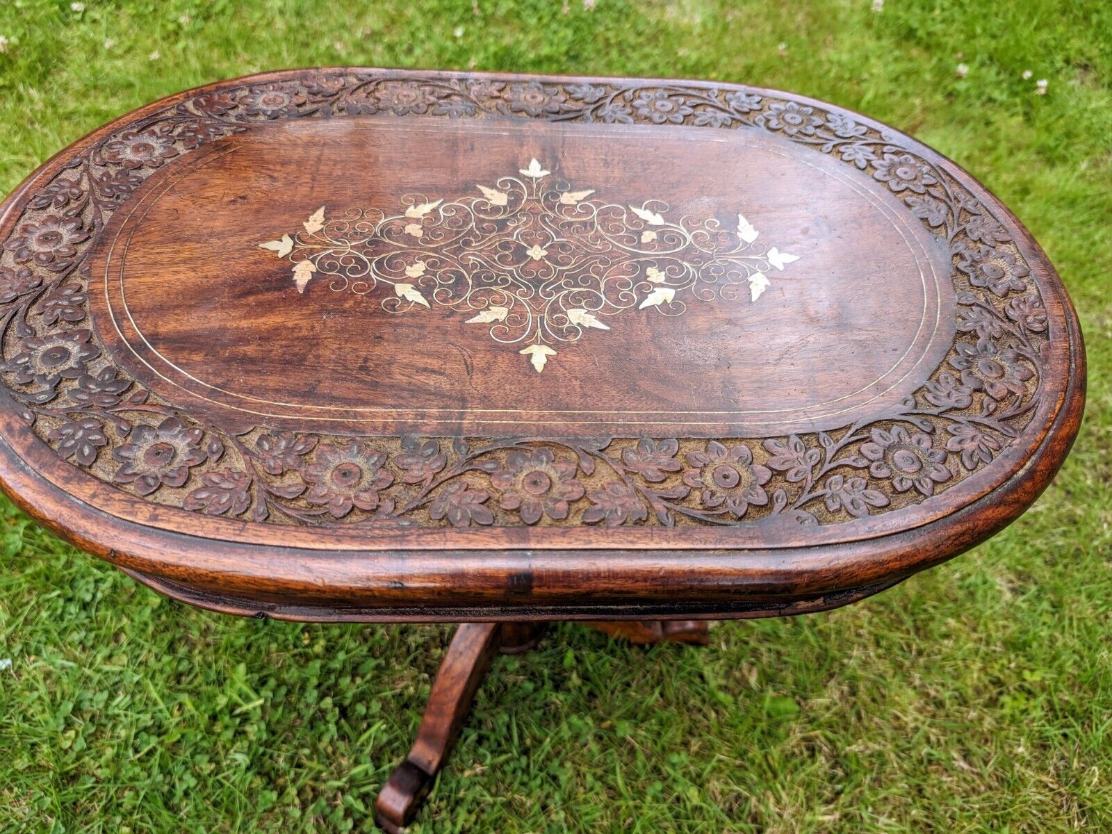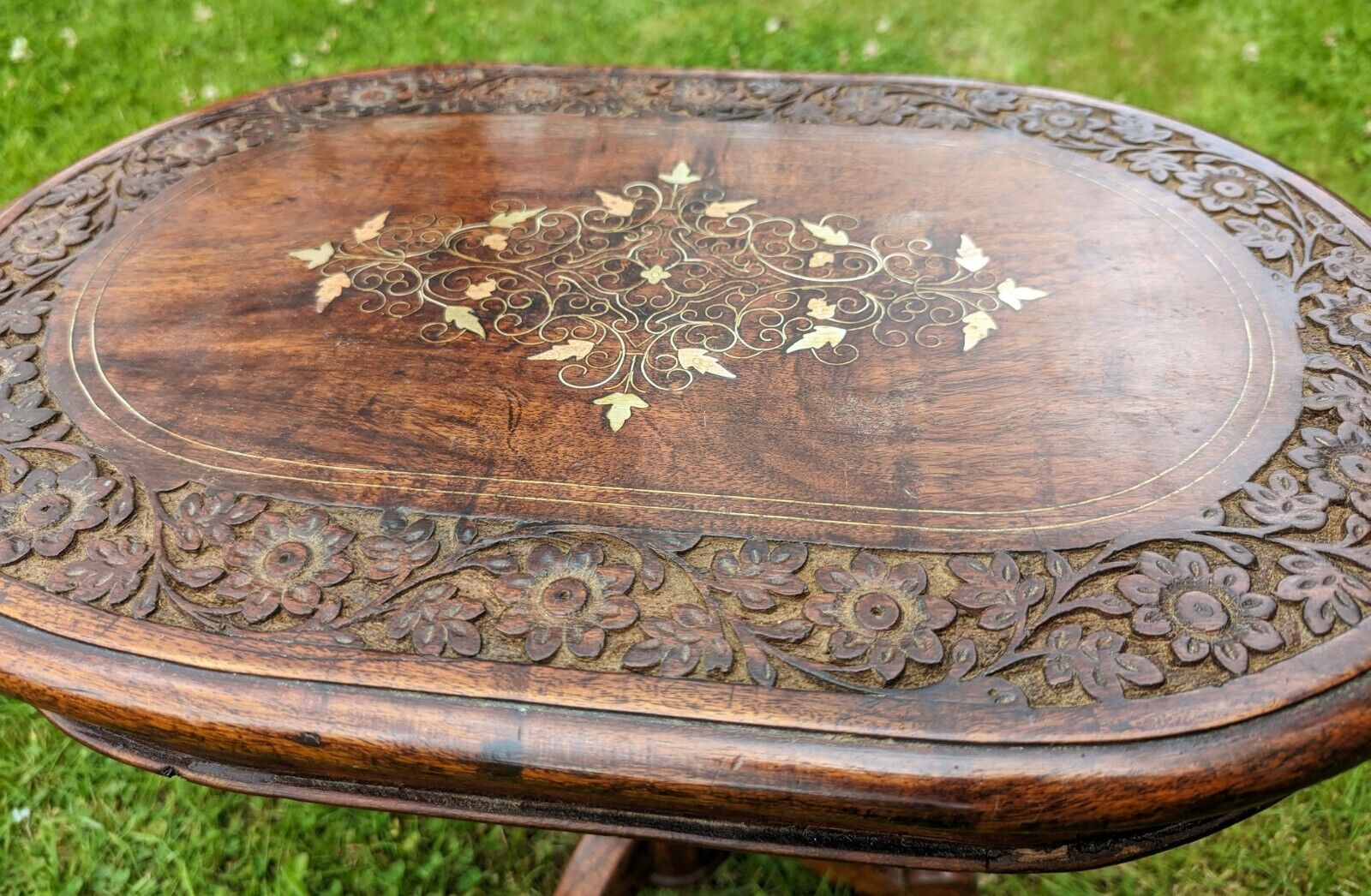 Antique indian hardwood brass inlaid oval table - Free UK Delivery