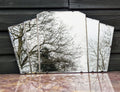 The bevelled edge adds a touch of sophistication, while the distressed finish gives it a unique, rustic charm.