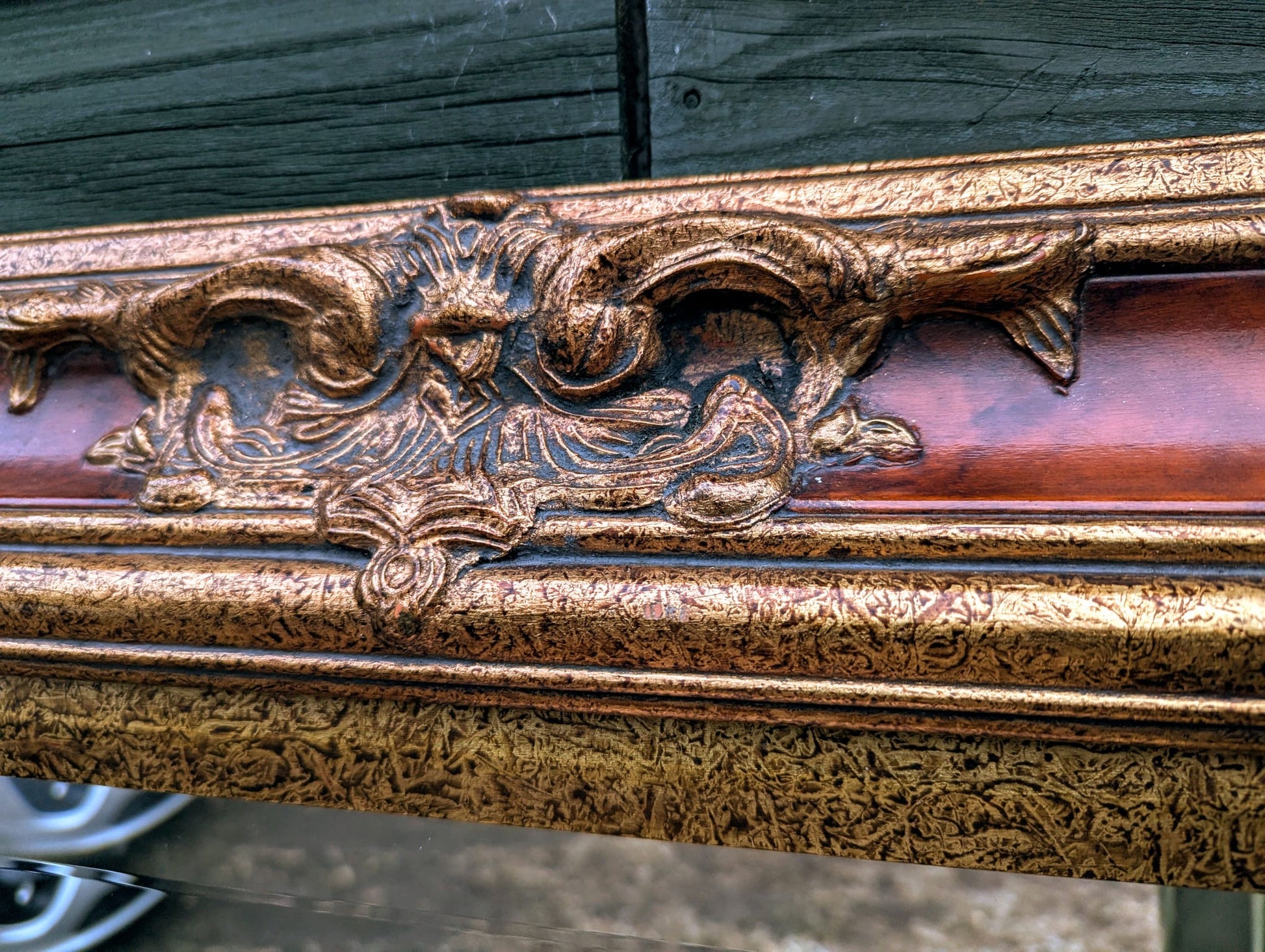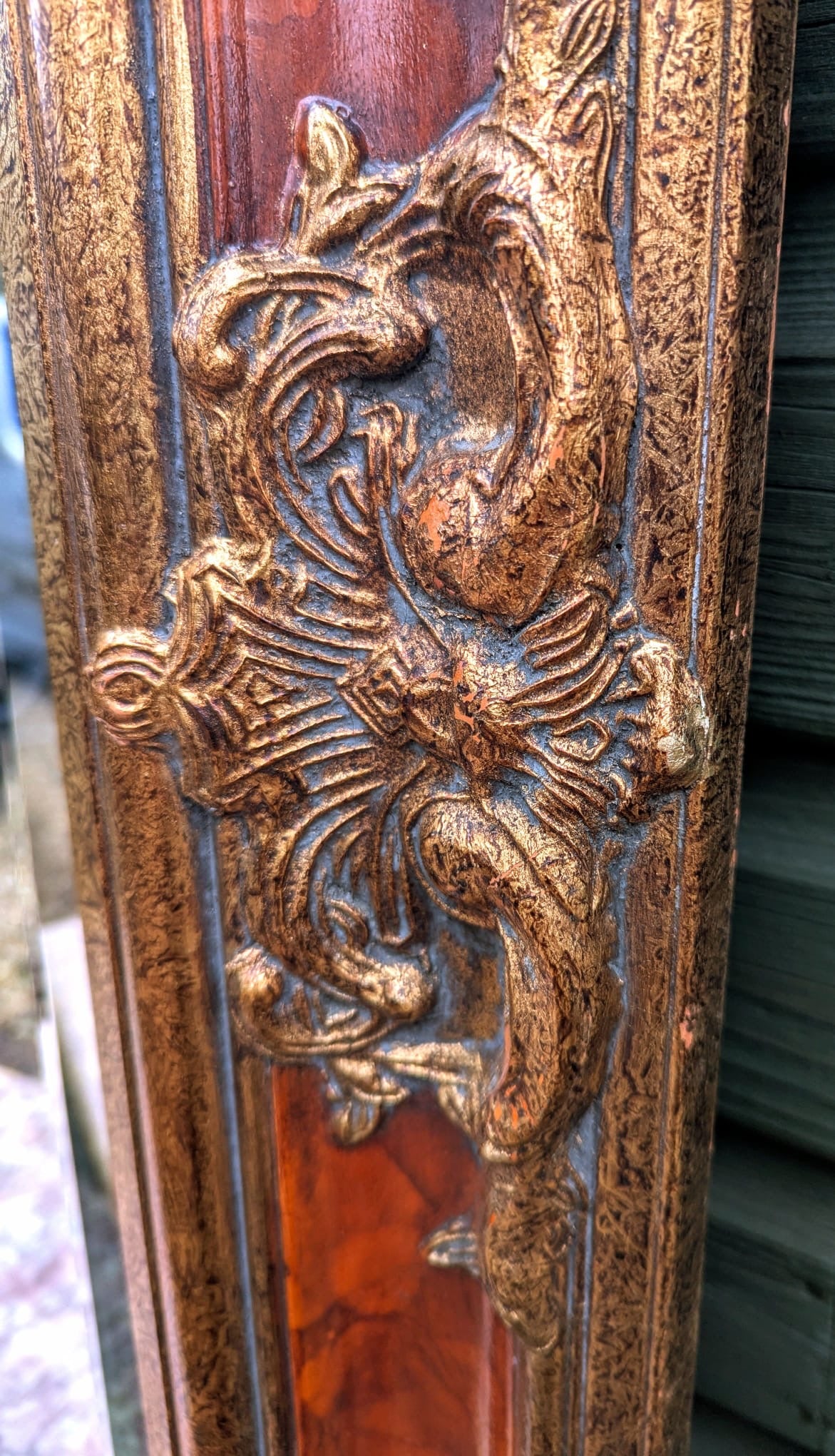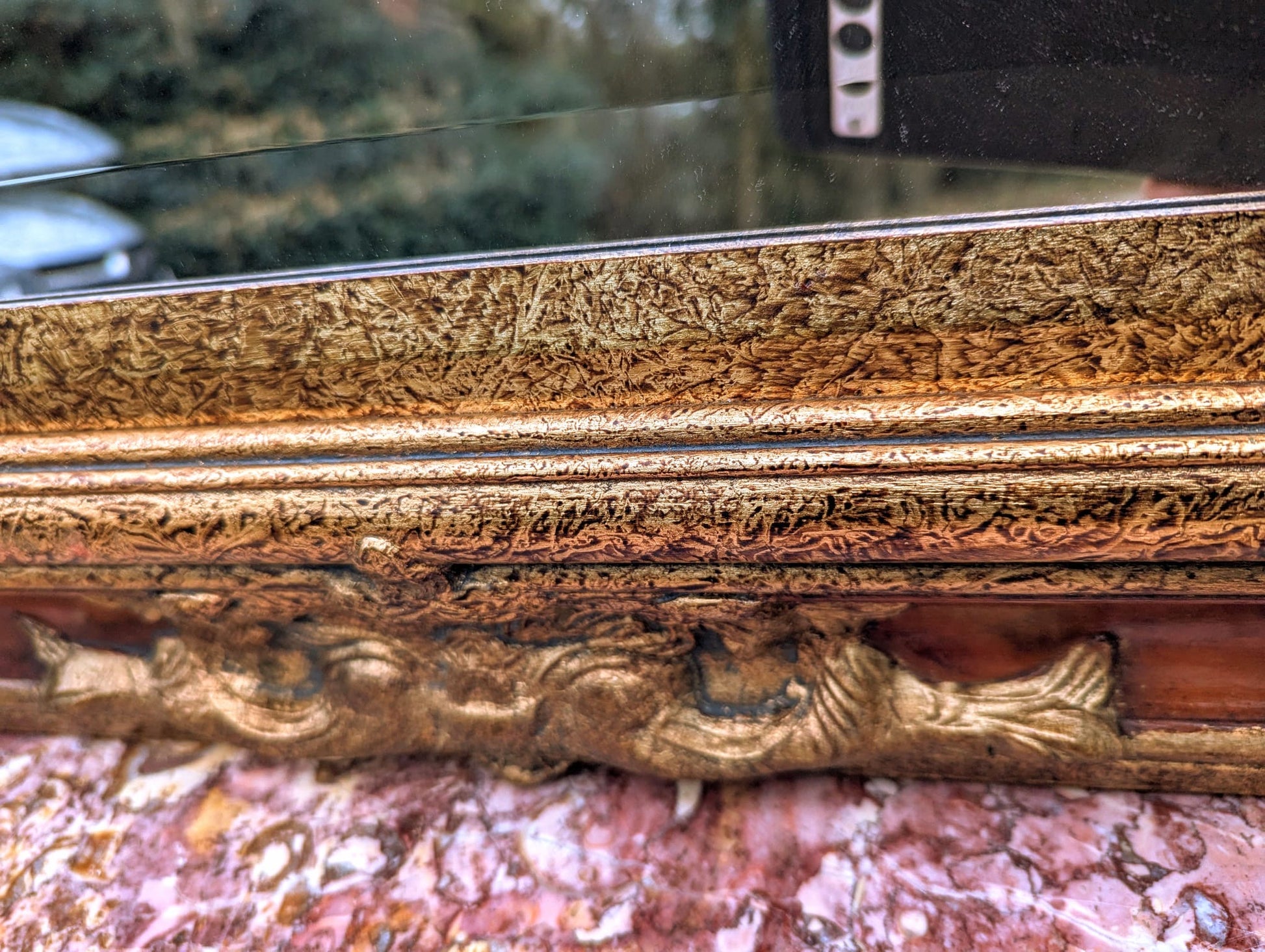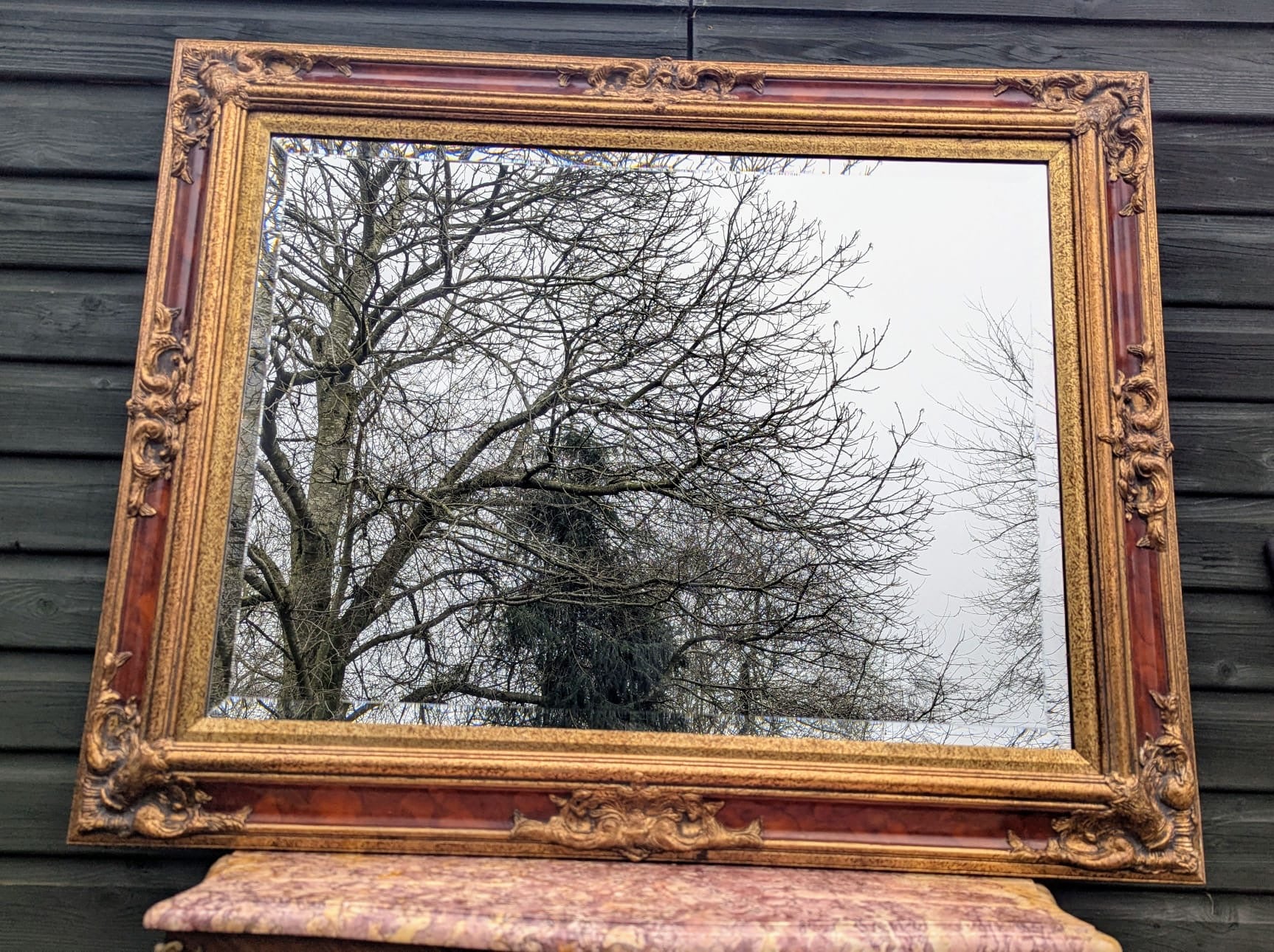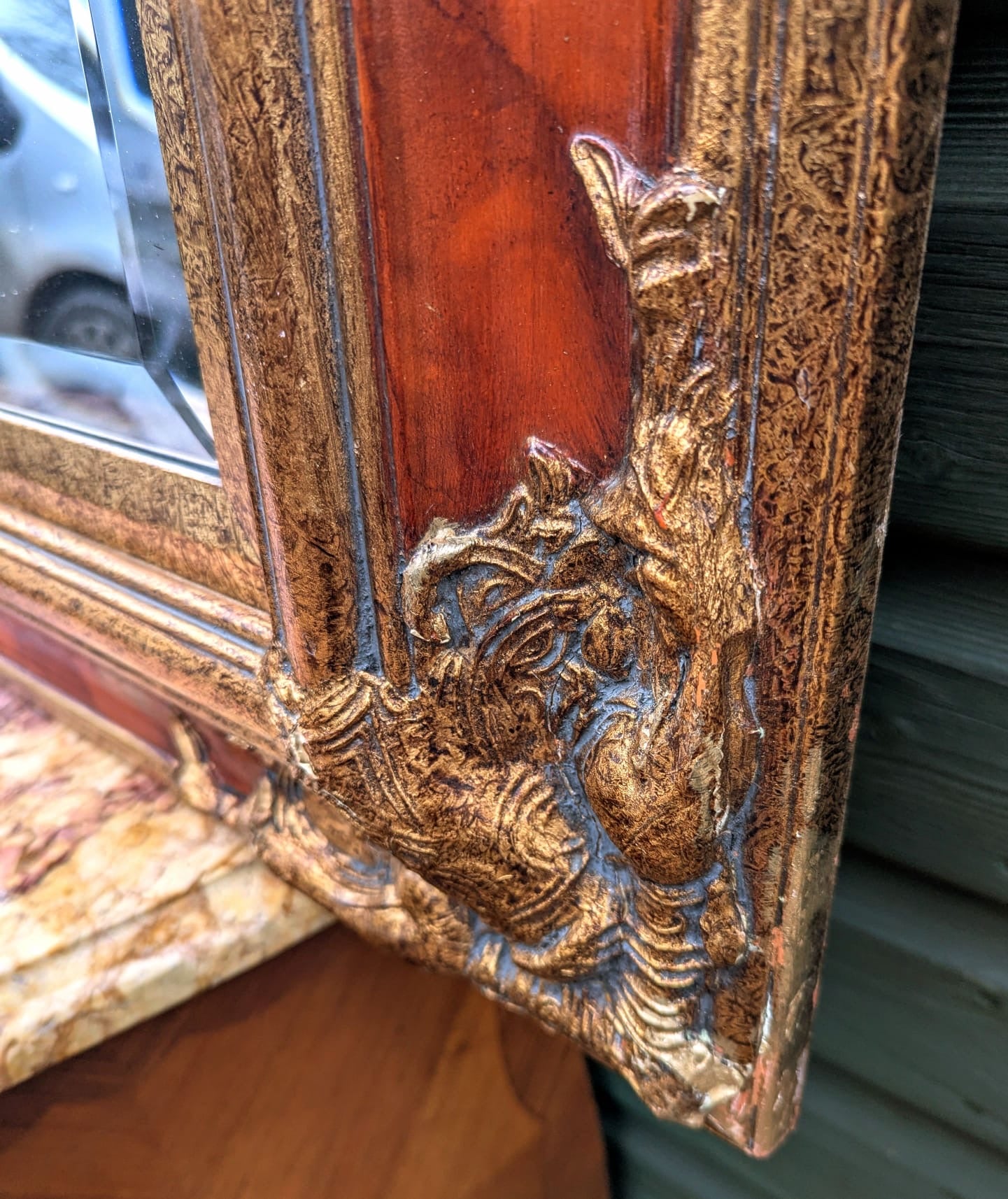 The frame is gilded and lacquered, with a mirrored finish that is sure to reflect your surroundings in great detail.