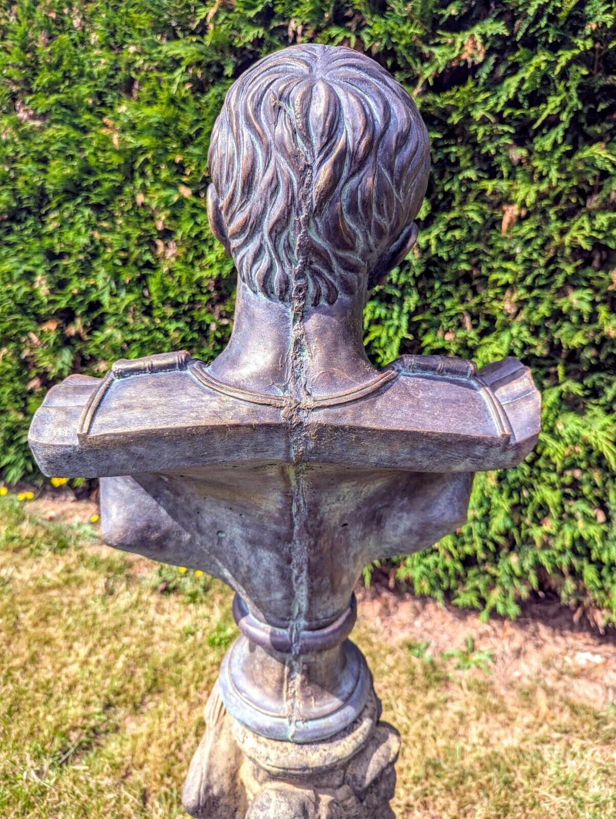 Crafted from high-quality stone with a bronzed verdigris finish , this bust is a testament to the skill and artistry of its maker.