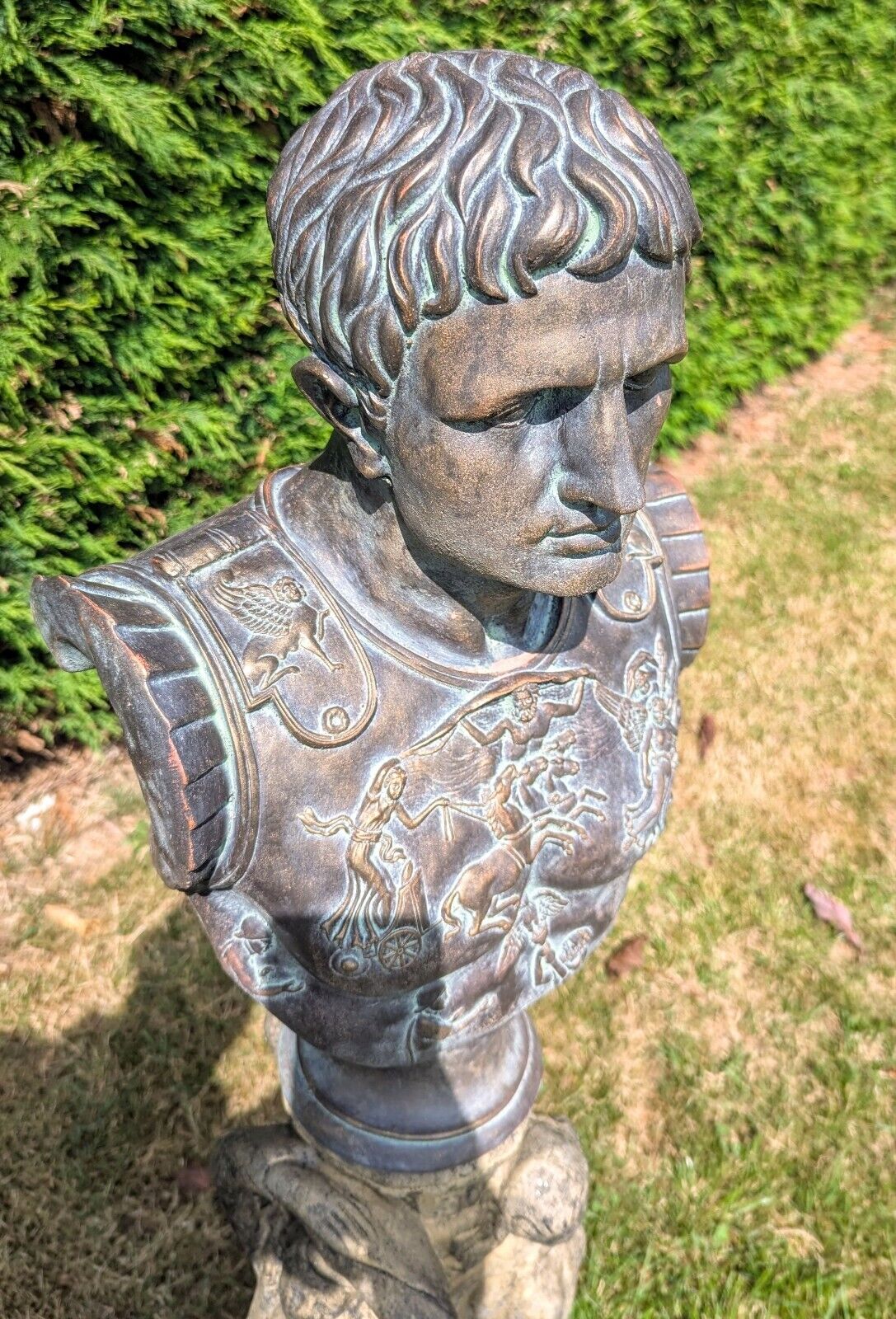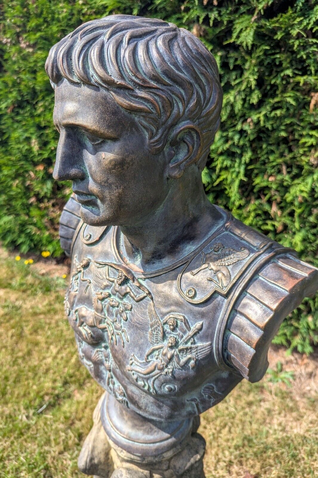 Great Looking Verdigris Bronzed Bust Caesar Augustus - Free UK Delivery