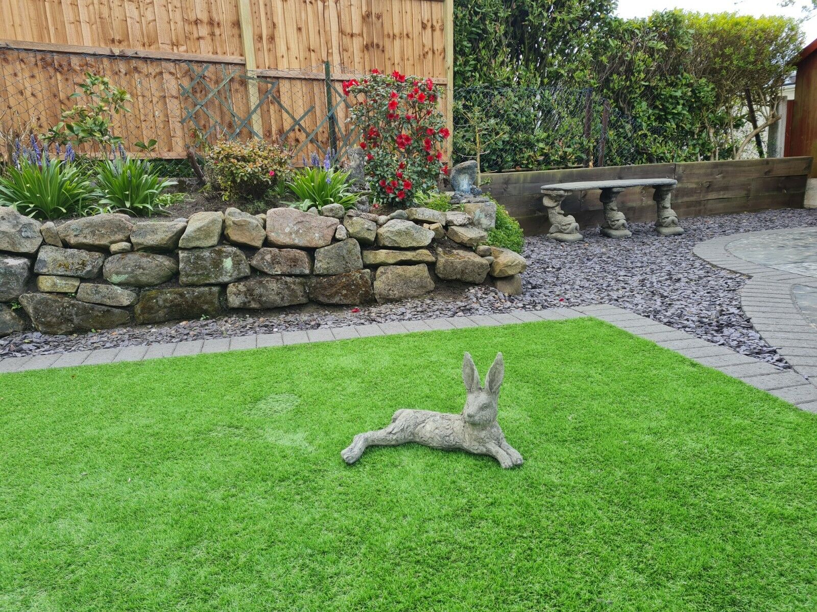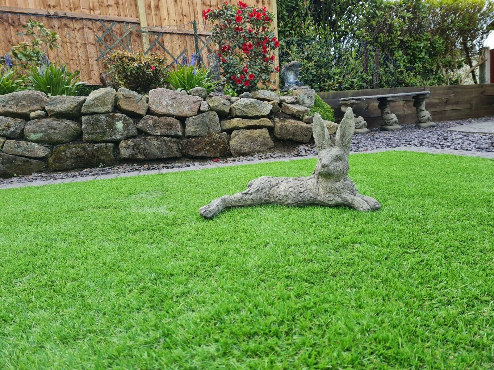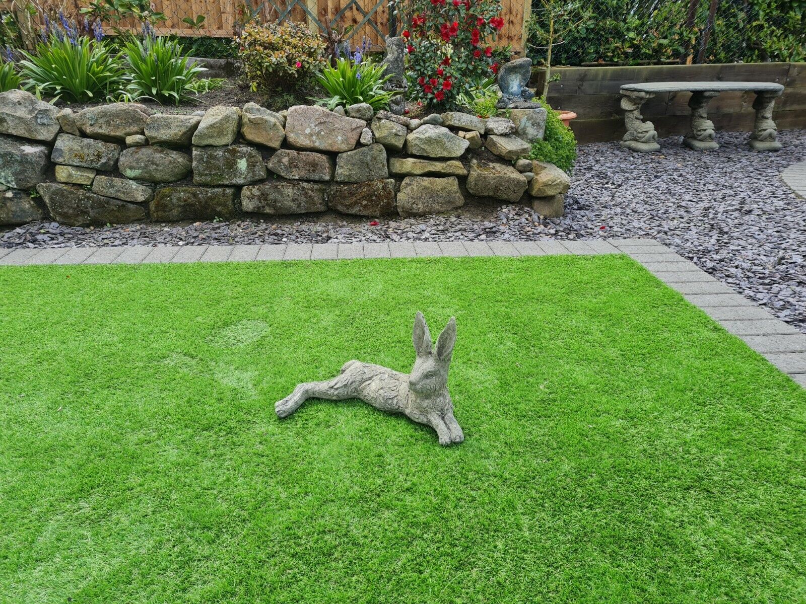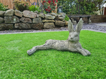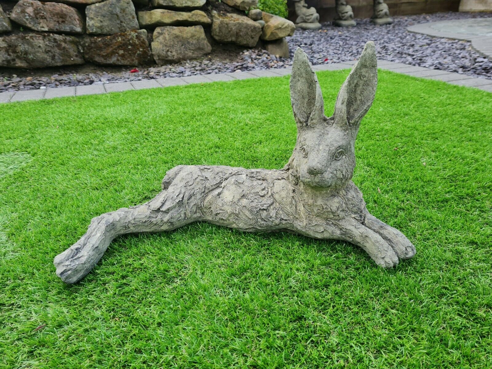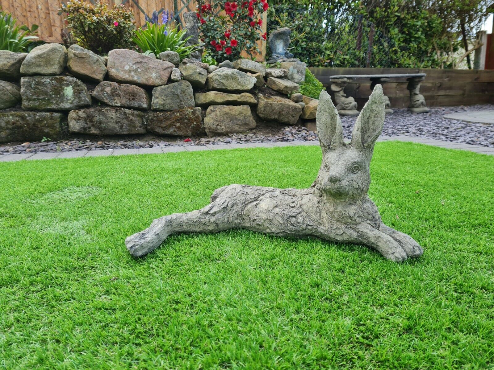 LAYING HAMPSHIRE HARE GARDEN ORNAMENT ENGLISH STONE. DELIVERY INCLUDED