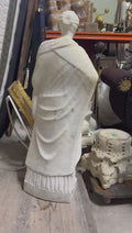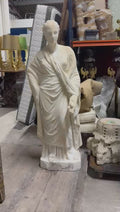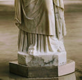 Enhance any indoor or outdoor area with this exquisitely crafted classical statue. This stunning piece depicts the goddess Ceres, symbolizing agriculture, harvest, and motherly fertility, and is skillfully carved from glossy Carrera marble. Measuring 26cm in length, 40cm in width, and standing at 138cm tall, this large and captivating statue will surely captivate any onlooker. Place it on a porch, balcony, flower bed, lawn, or any desired space to elevate its elegance and sophistication. Resistant to frost and weather conditions, this durable statue will make a lasting impression. For your convenience, delivery is available, making it effortless to add this magnificent work of art to your collection.