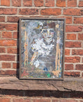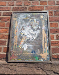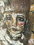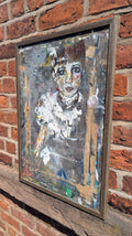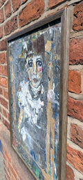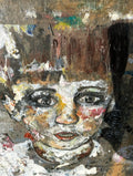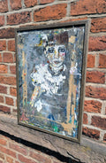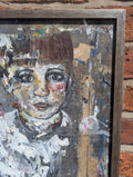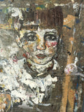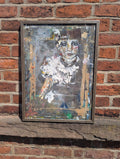 This abstract art oil painting depicts a girl and is a unique, one-of-a-kind piece. The painting measures 48cm in length and 65.5cm in height, and is painted on an easel. The artist is unknown, but the painting was produced in England in the 1950s.