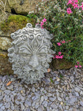 This Greenman garden plaque is hand crafted and casted in England with locally sourced English Stone, offering a distinct finish with sparkling Quartz. This product will only improve over time, making it a lovely addition to any outdoor space.