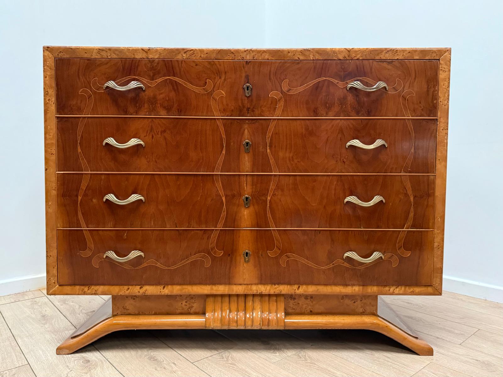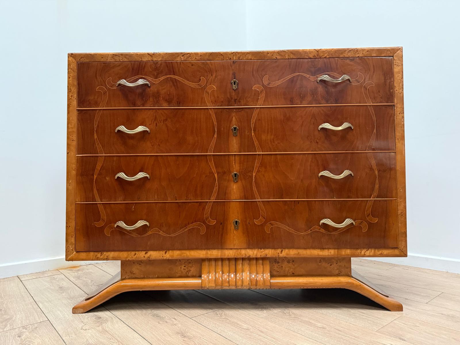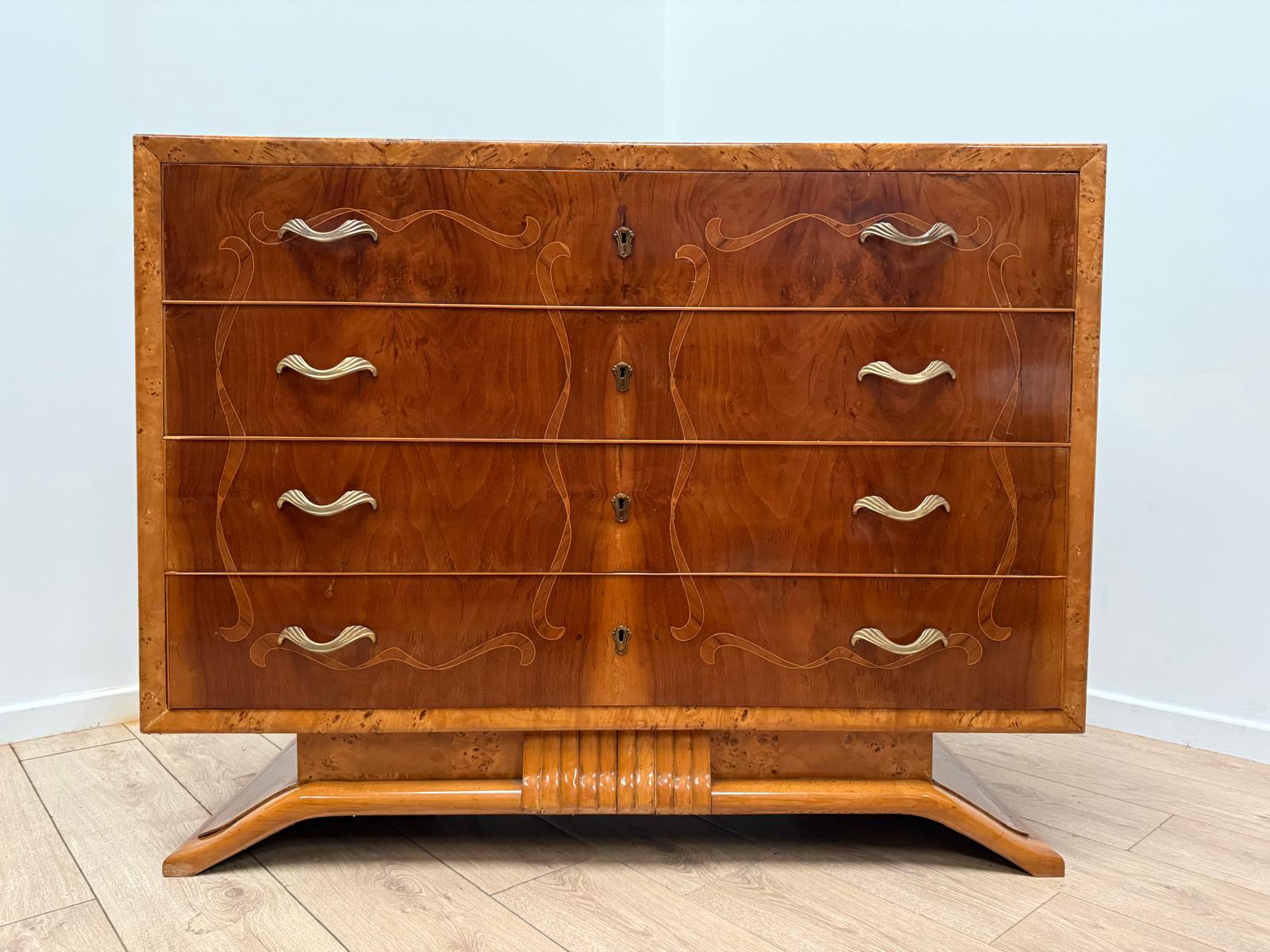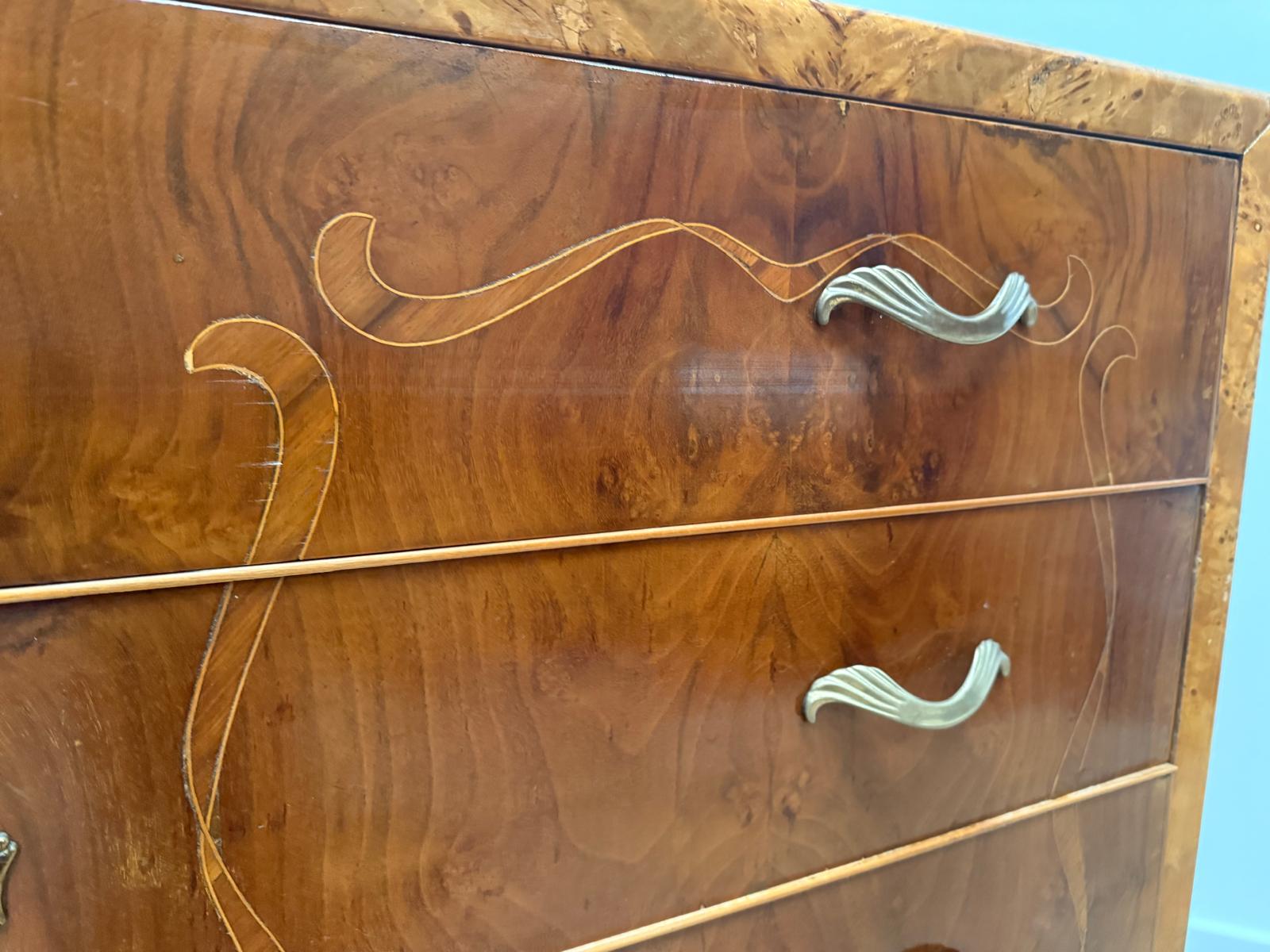 Italian Inlaid Art Deco Walnut Route Chest Dresser - Delivery available 0179.
