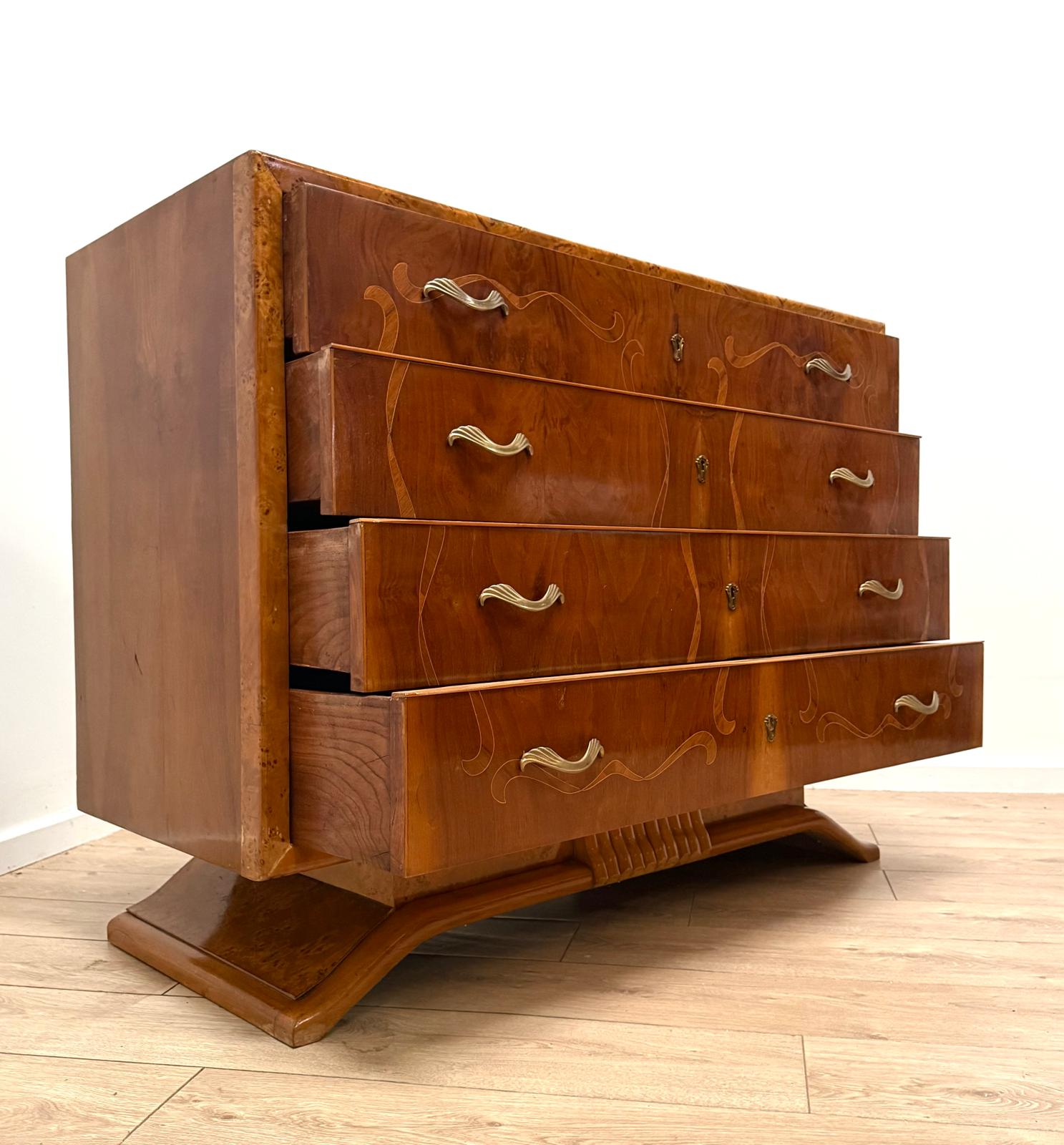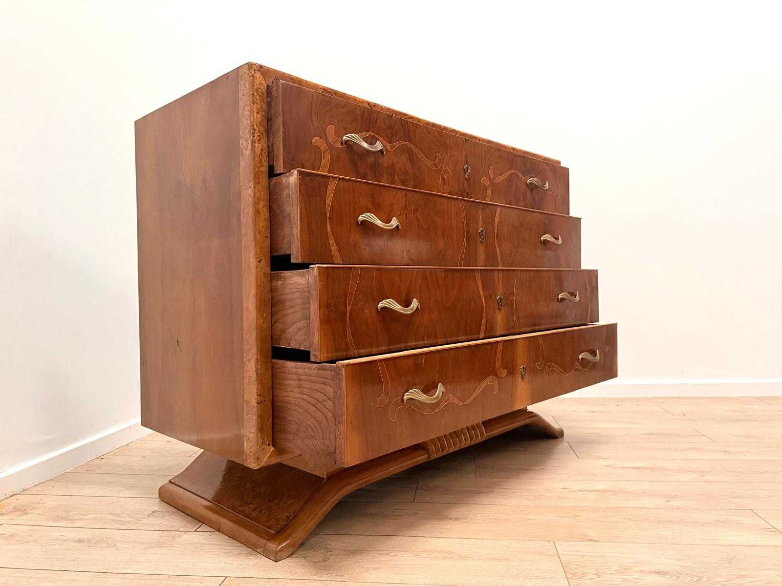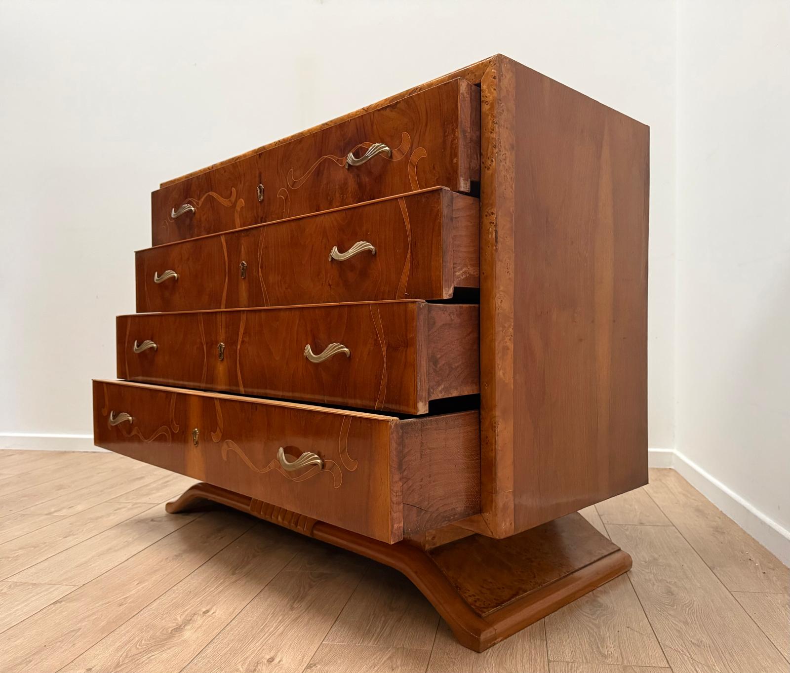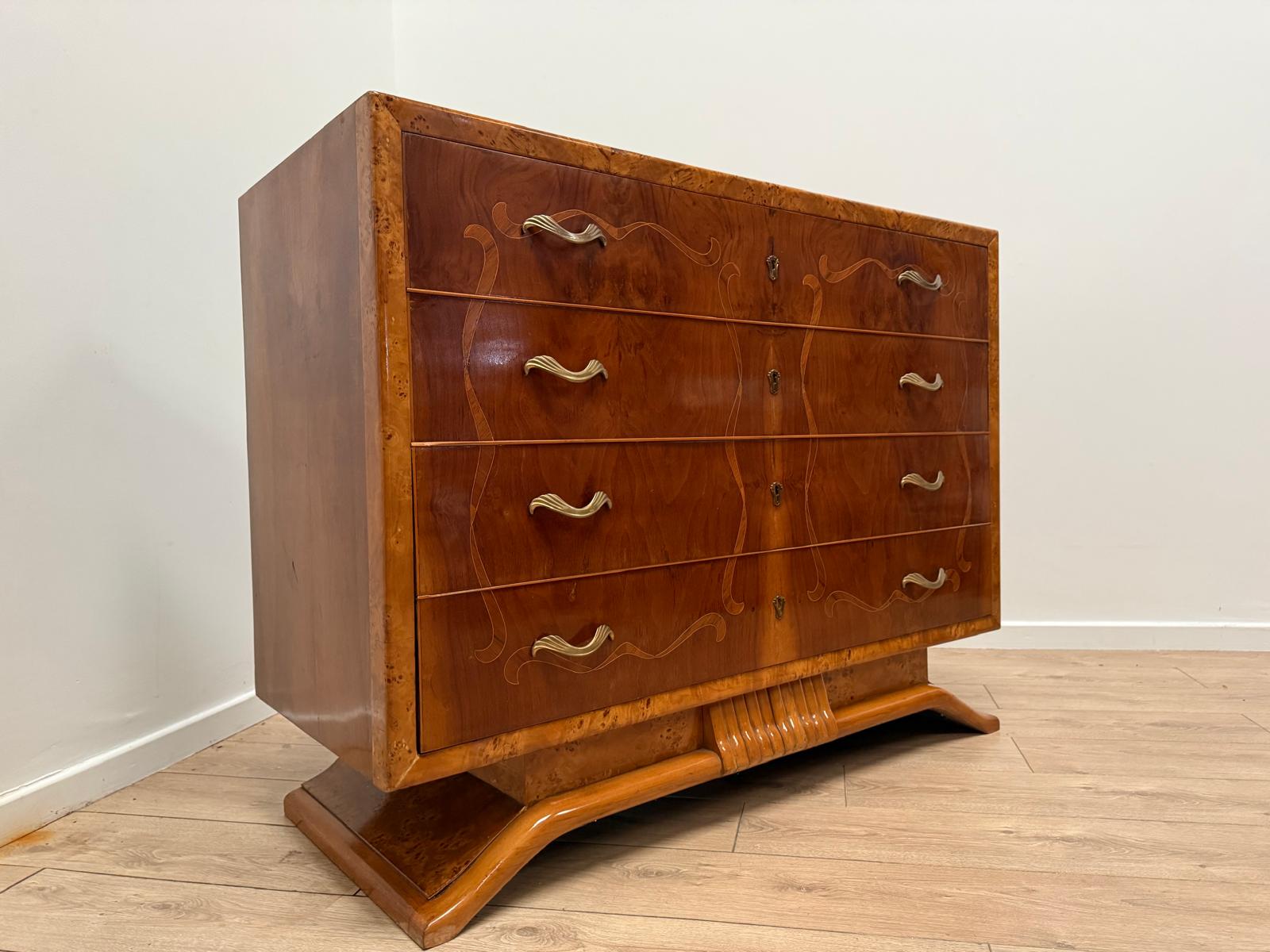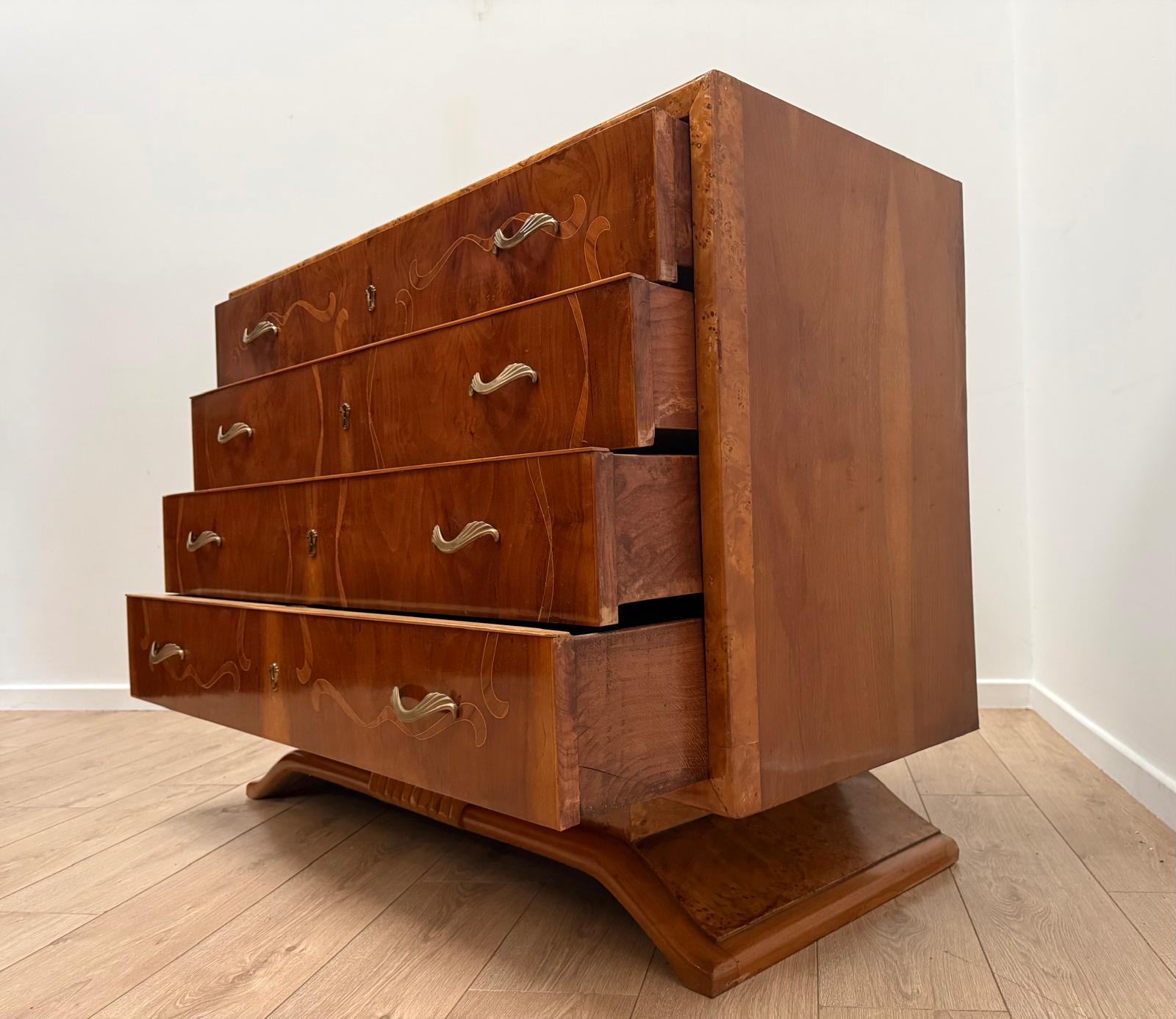 Italian Inlaid Art Deco Walnut Route Chest Dresser - Delivery available 0179.