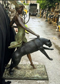Large bronze Goddess of the hunt with bow and panther - delivery available