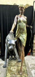 Incredible Large bronze Goddess of the hunt with bow and panther.