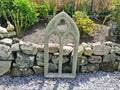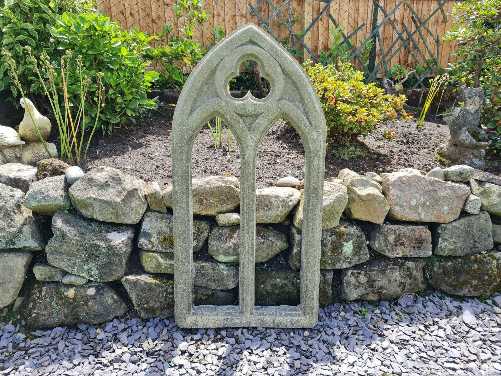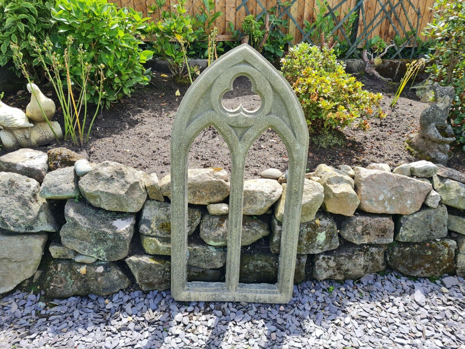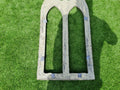 LARGE CHURCH ENGLISH STONE WINDOW FRAME DOUBLE ARCH - An exquisite addition to any garden - fixtures included to hold a mirror or cut glass.