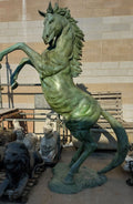 Large statement bronze Verdigris rearing stallion statue - delivery available