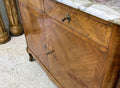 The stunning geometric inlay quarter vaneered witb aged metal handle finish give it a timeless elegance that will elevate any room. Crafted from high-quality marble, this original piece was hand-made in France during the late 19th century