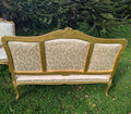 Crafted from high-quality wood and fabric, this original piece from French Home is fully assembled and ready for use. Measuring 148cm in length, 111cm in height, and 63cm in width, it can comfortably seat three adults. The guild finish adds a decorative touch to the already outstanding design. Its antique status and French theme make it a perfect addition to any antique furniture collection. Delivery is available for your convenience.