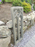 Capture the beauty of centuries past with this gorgeous MEDIEVAL STYLE DOUBLE ARCH STONE WINDOW FRAME. Fixtures included to easily mount a mirror or cut glass.